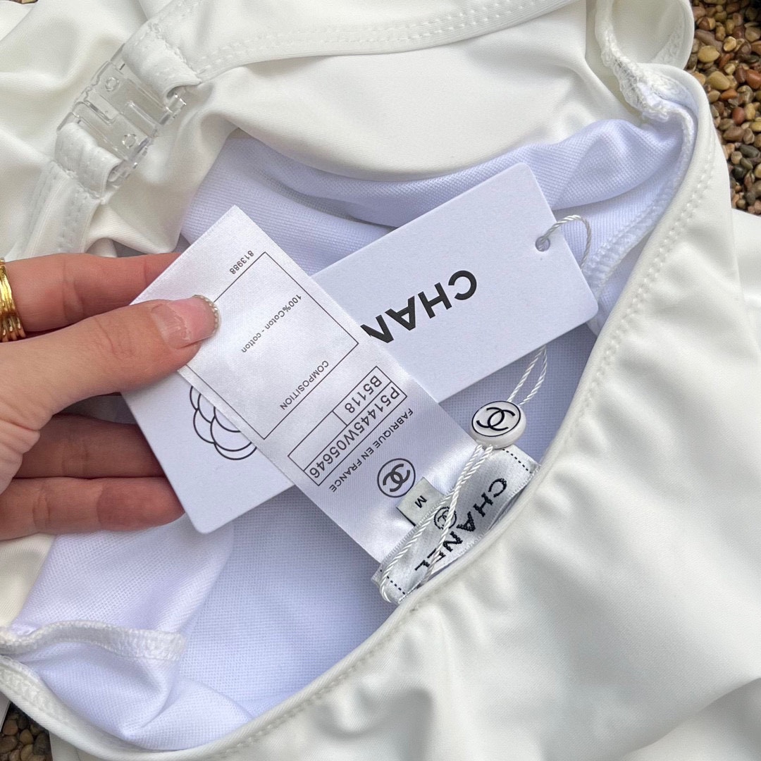 Chanel Ruffle Irregular One Piece Swimsuit Bikini