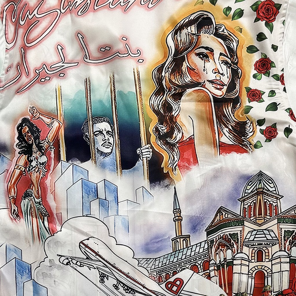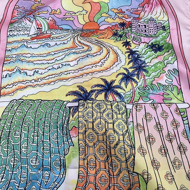 Casablanca Painted Plaid aircraft printed silk casual short-sleeved shirt