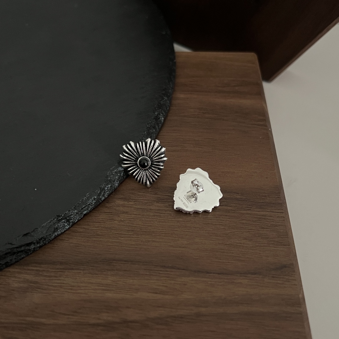 𝐆𝐮𝐜𝐜𝐢 925 Sterling Silver Interlocking Double G Black Shell Love Stud Earrings