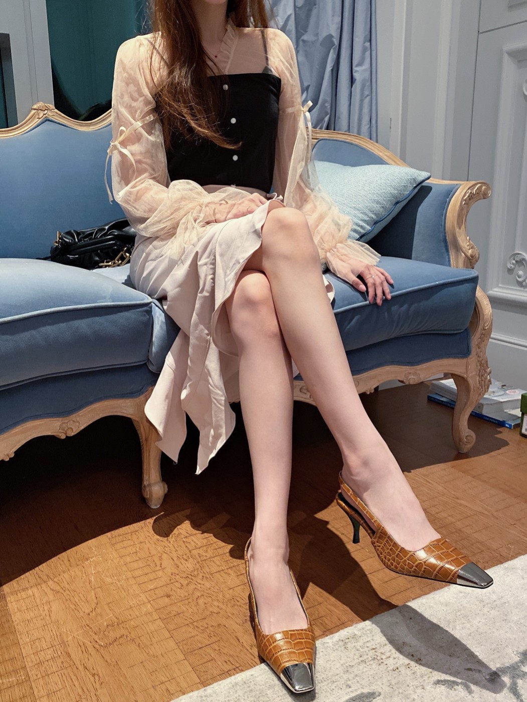 【Saint Laurene Saint Laurent】 YSL summer model thick heeled sandals with 6.5cm high