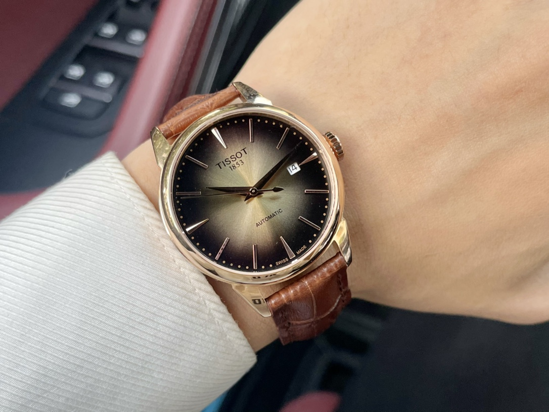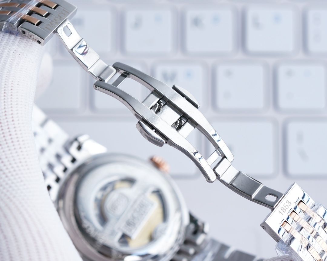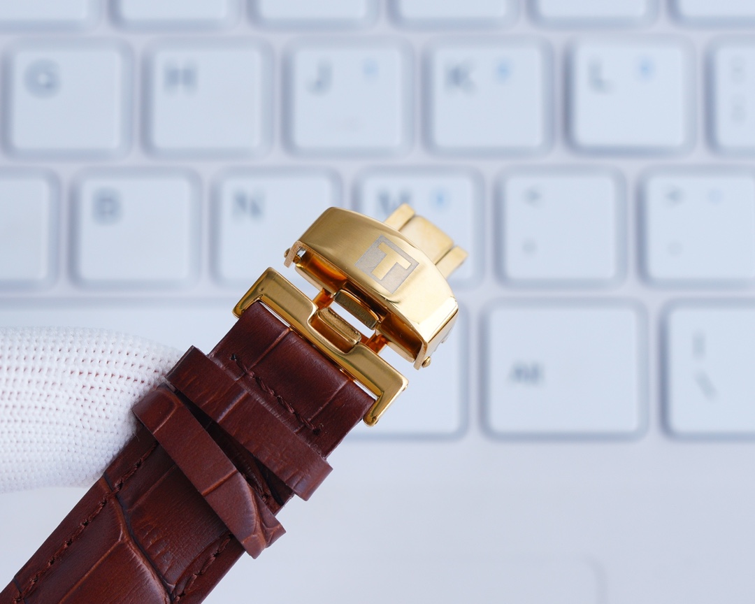 Tissot sapphire glass mirror 316 steel original double button butterfly buckle/genuine leather belt