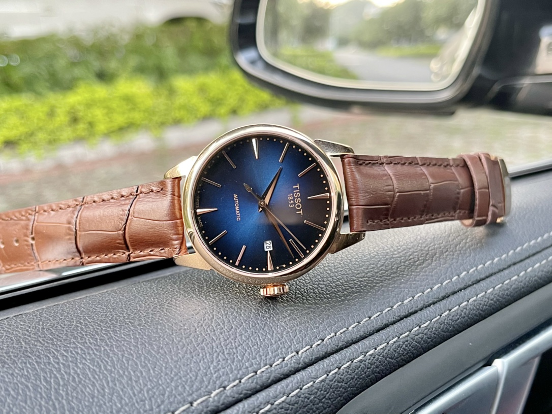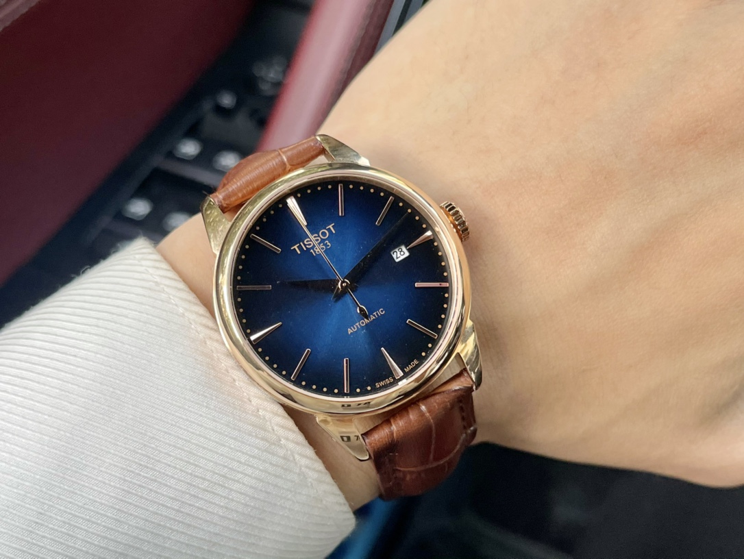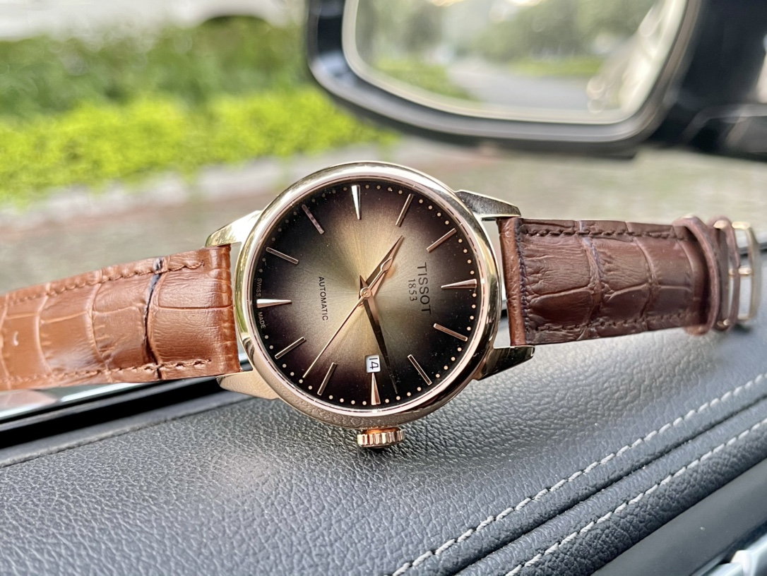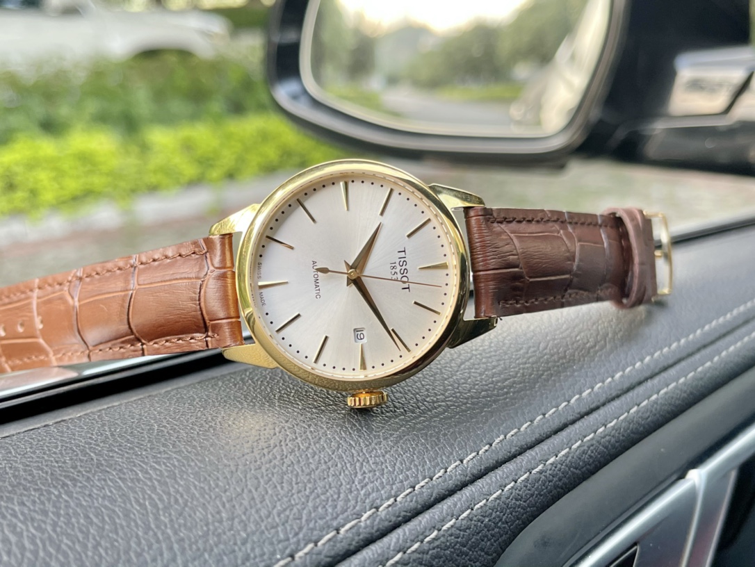 Tissot sapphire glass mirror 316 steel original double button butterfly buckle/genuine leather belt