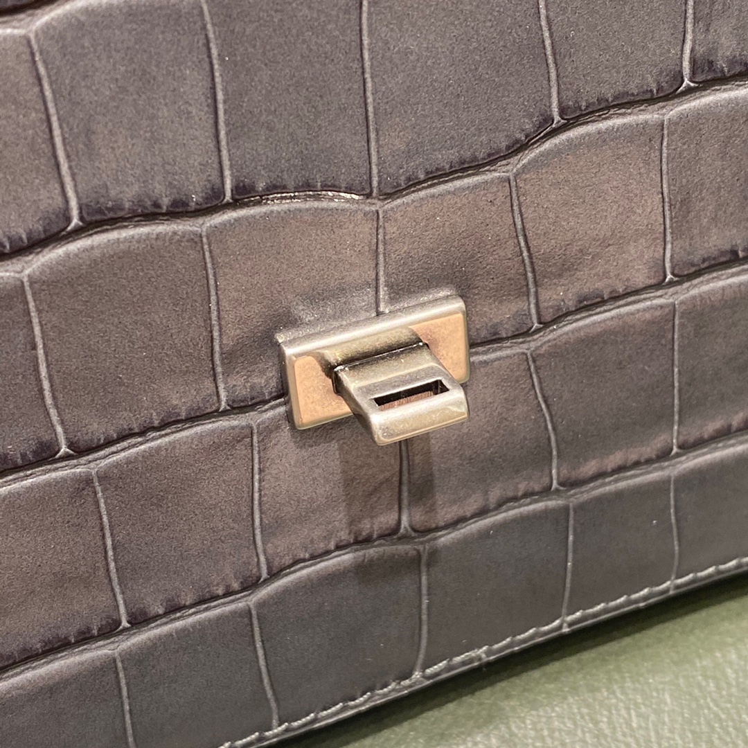 BALENCIAGA 𝘀𝗺𝗮𝗹𝗹 𝗯𝗮𝗴 𝗯𝗮𝗴 crocodile pattern graphite grey silver buckle