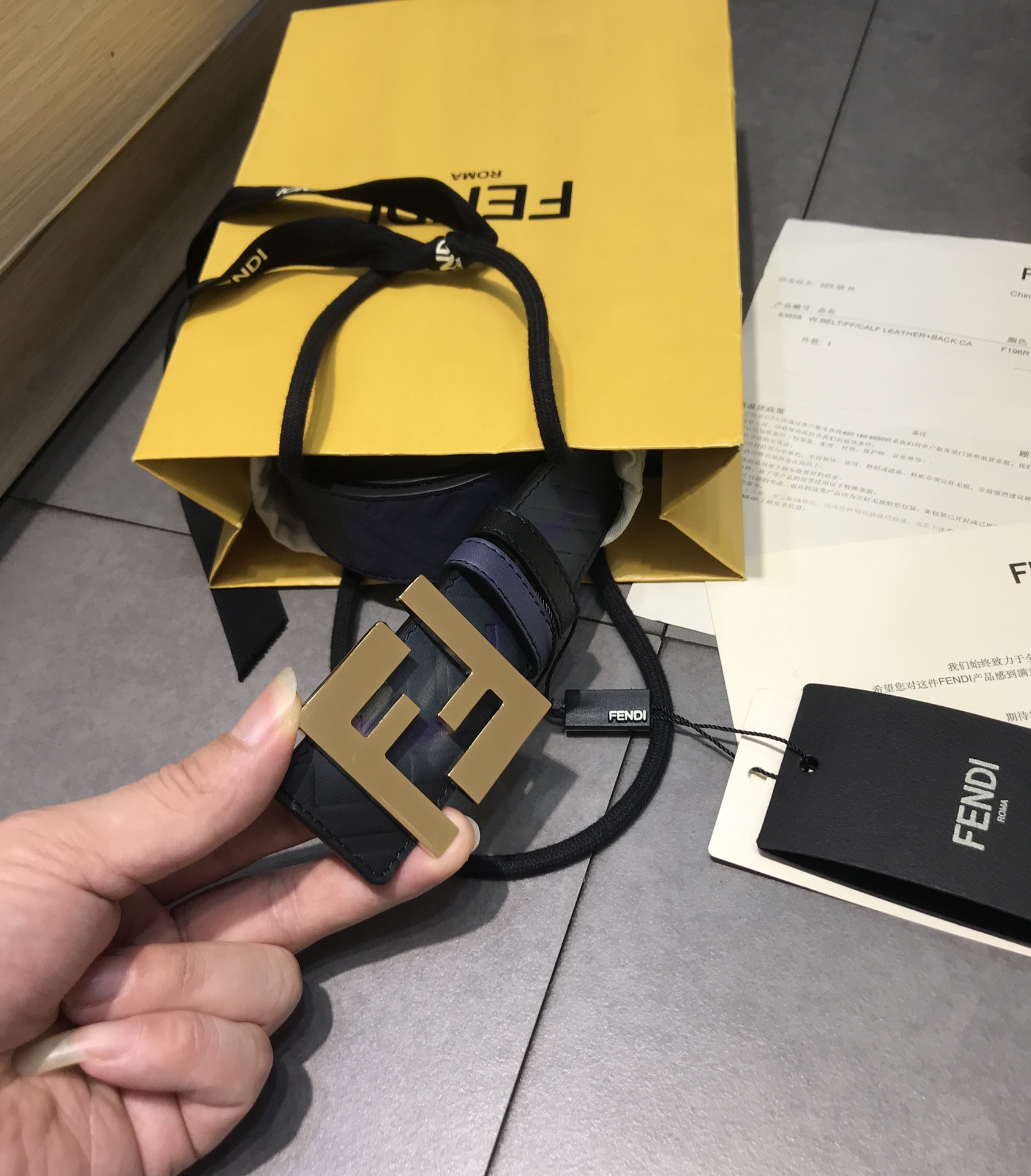 FENDI original water drop pattern double color rivet buckle