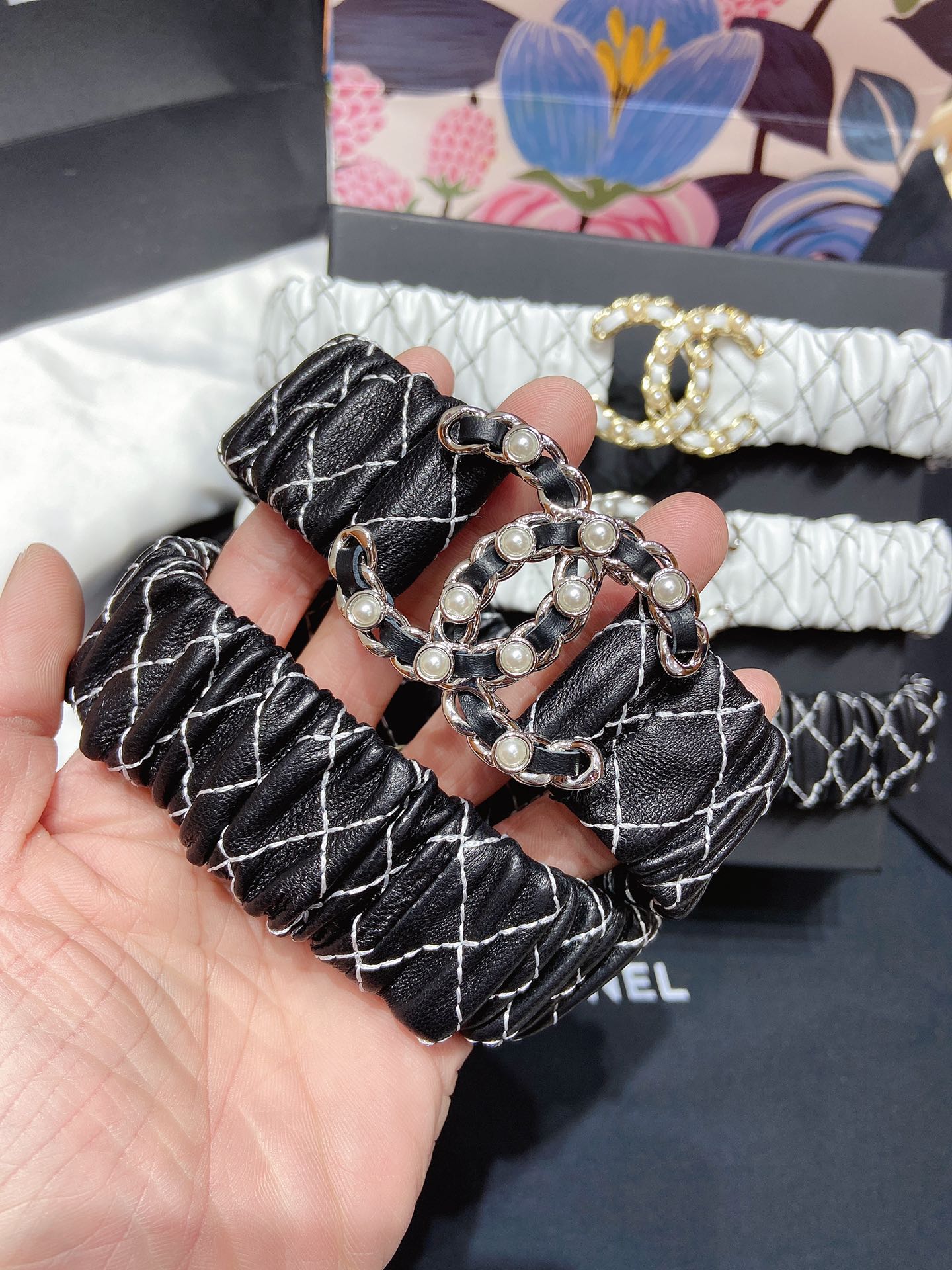 𝗖𝗛𝗔𝗡𝗘𝗟 classic lambskin elasticated waistband