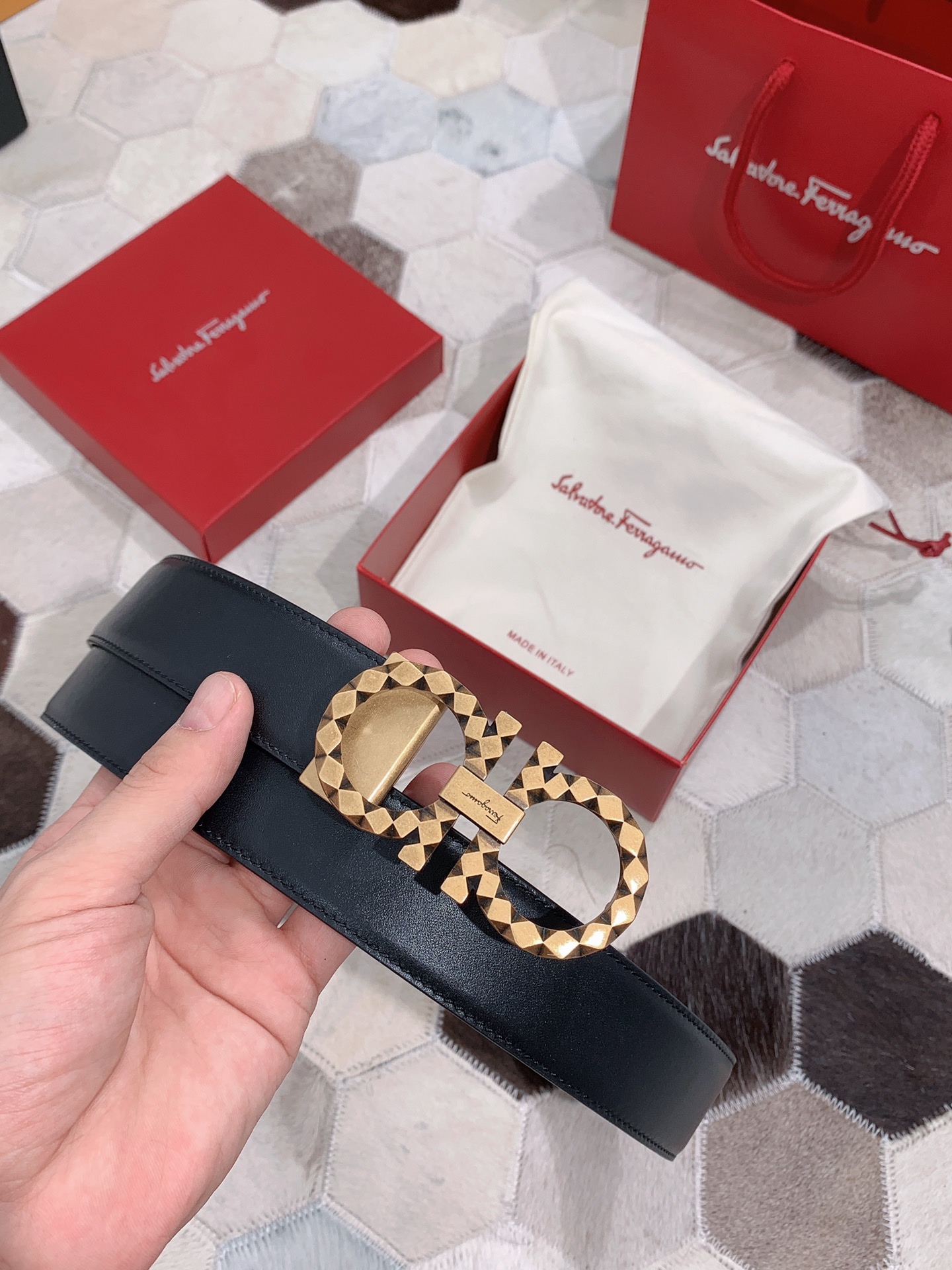 FERRAGAMO boutique buckle head, first layer of cowhide