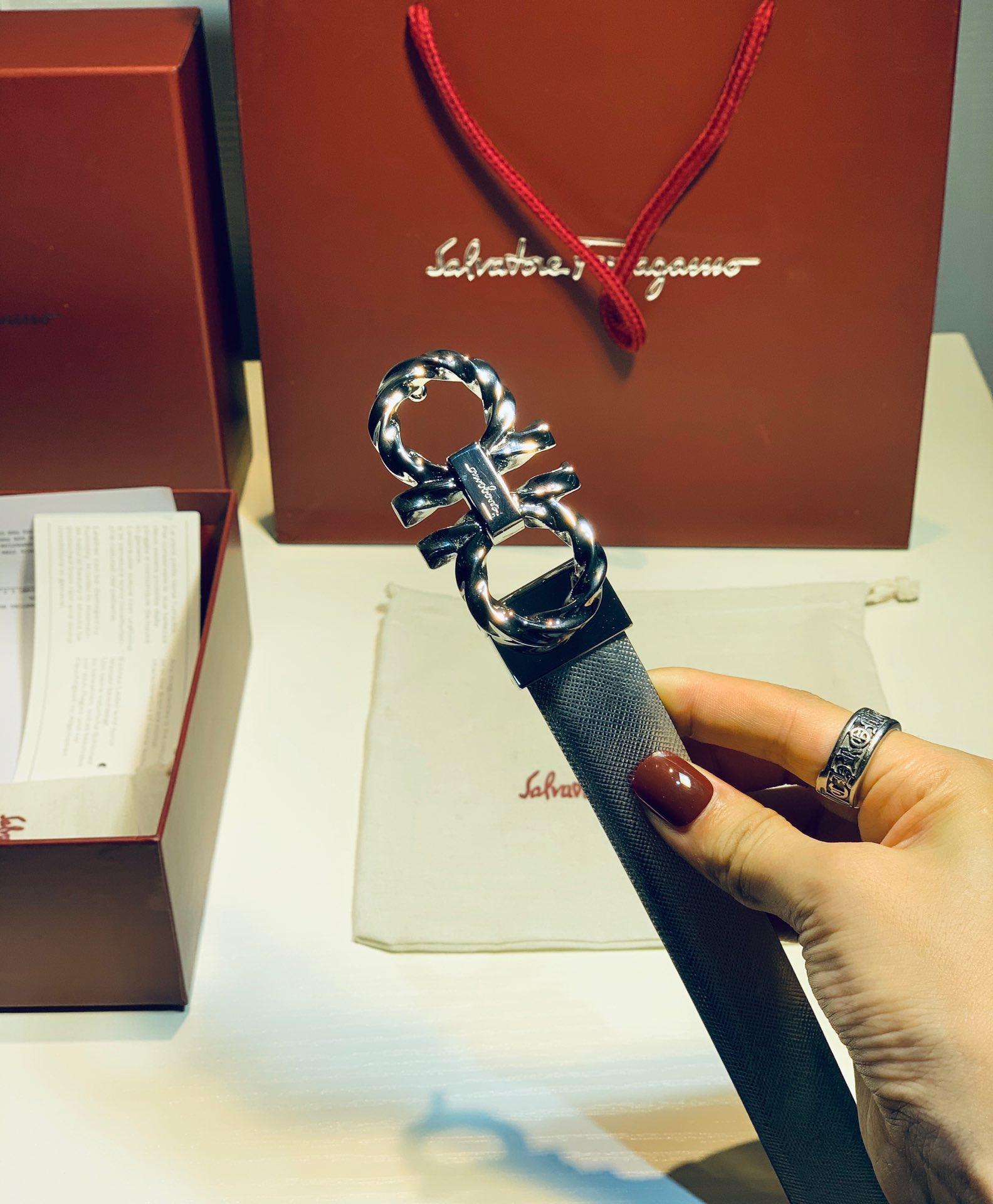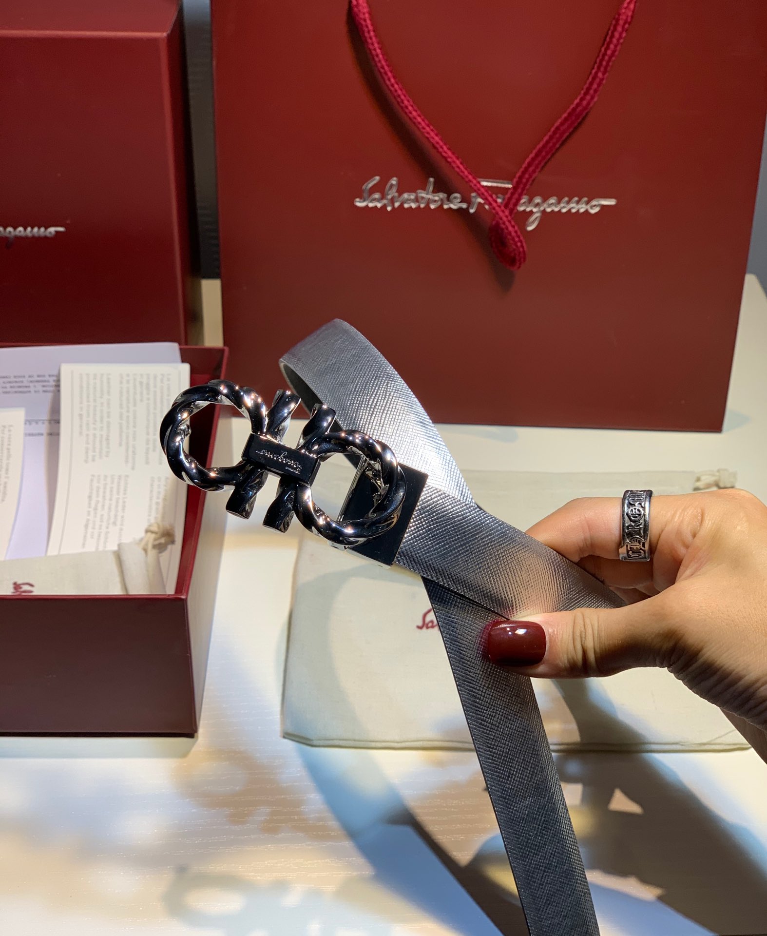 FERRAGAMO double-sided imported Italian cowhide