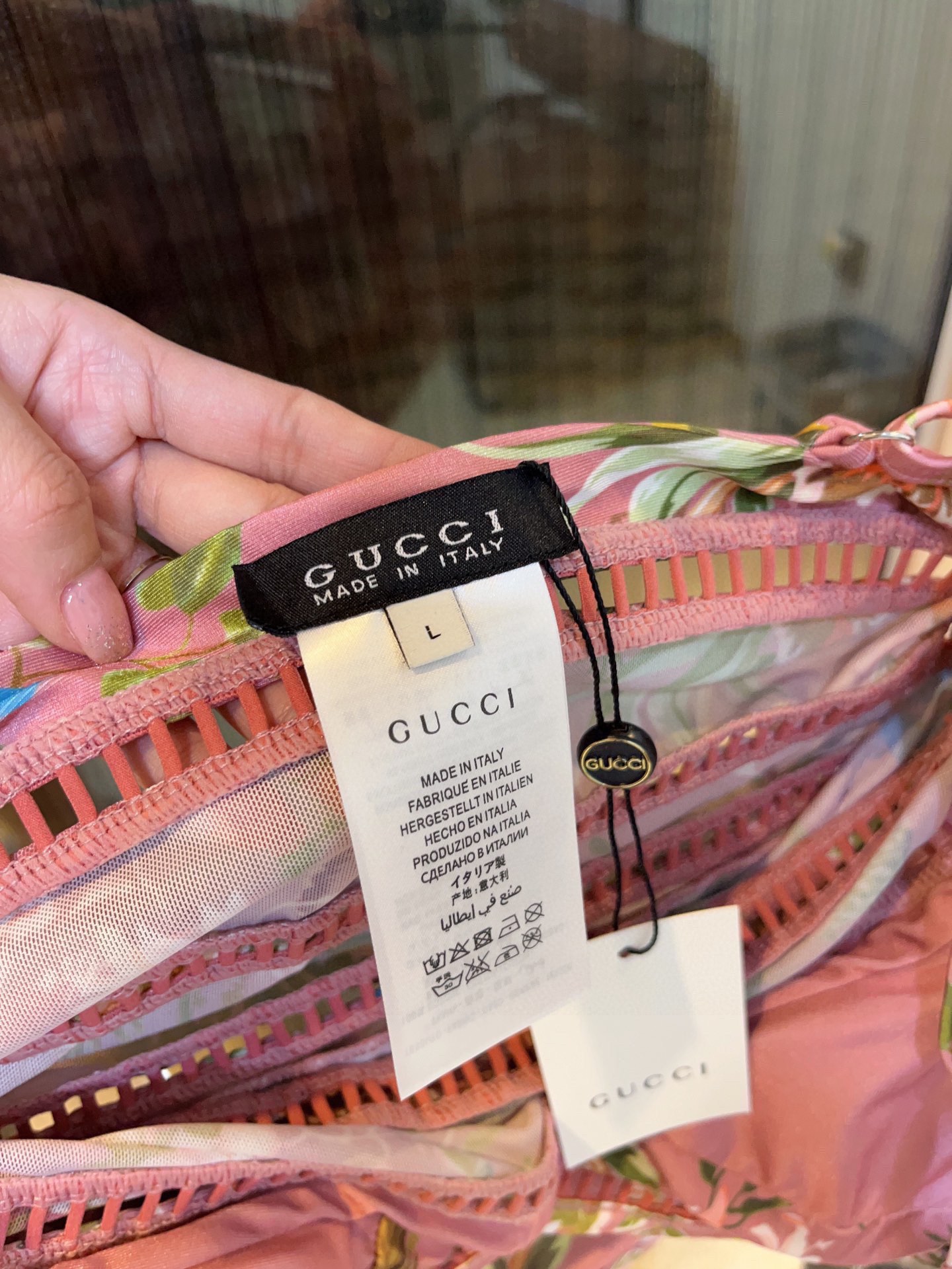 Gucci Letter Embroidered Mesh Camisole Semi-Sheer Sexy Swimsuit