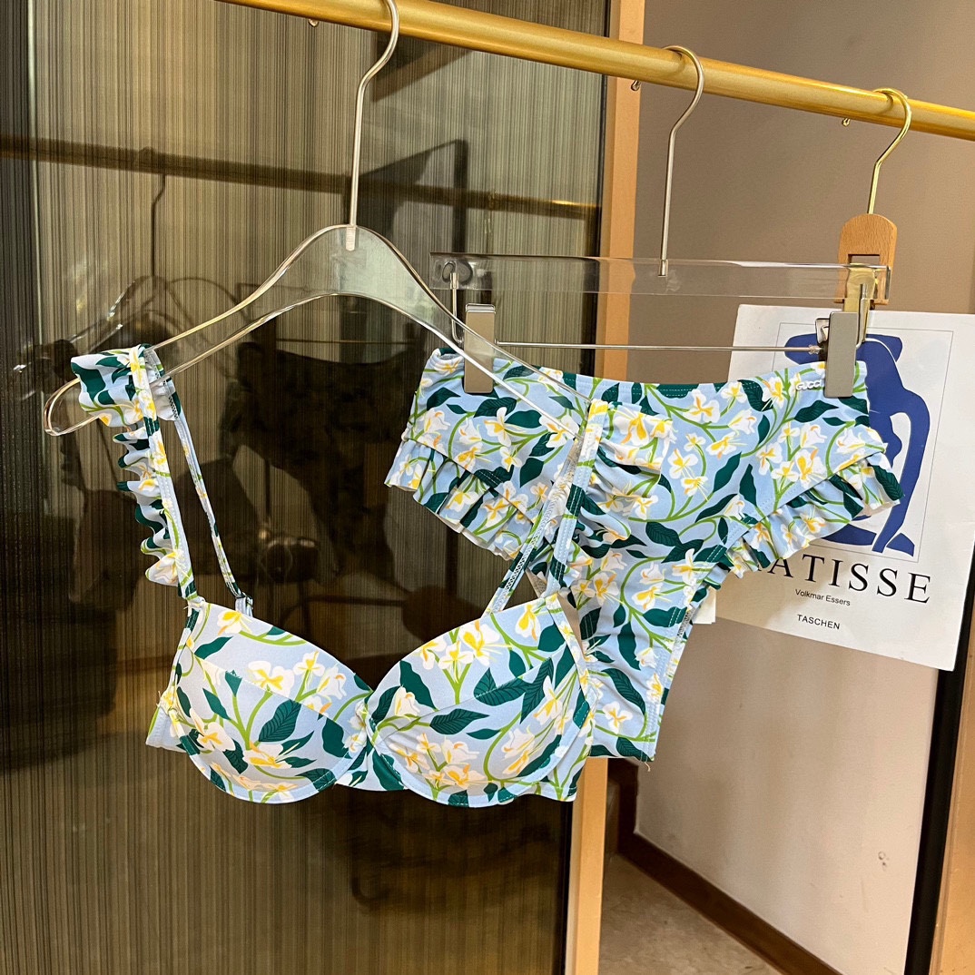 Gucci New split bikini swimming costume halter with steel ring bra + triangle shorts