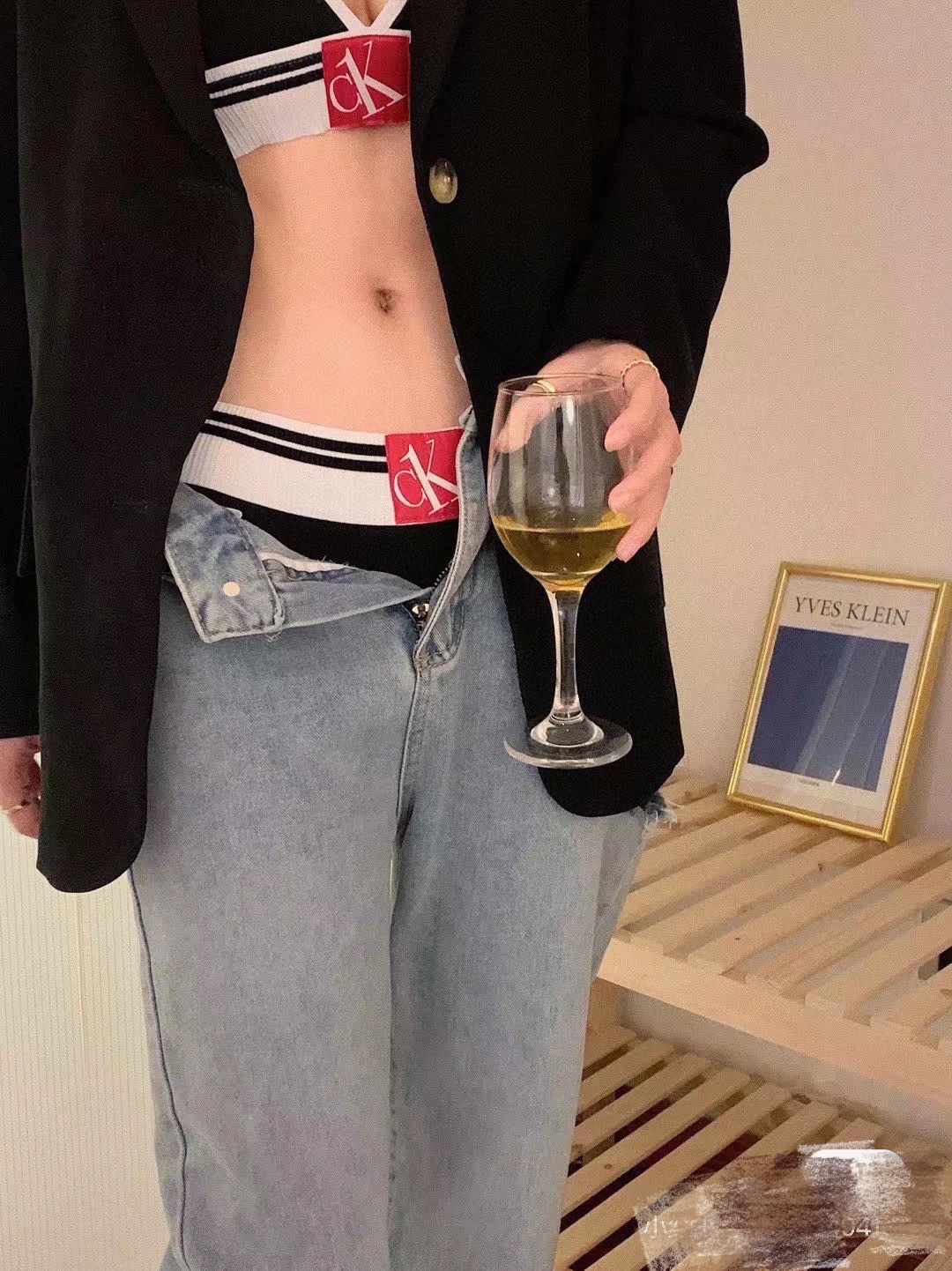Ck Underwear Women Steelless Triangle Cup with Bra Pads Sexy Sports Bra Low Waist Ck Briefs Swimwear