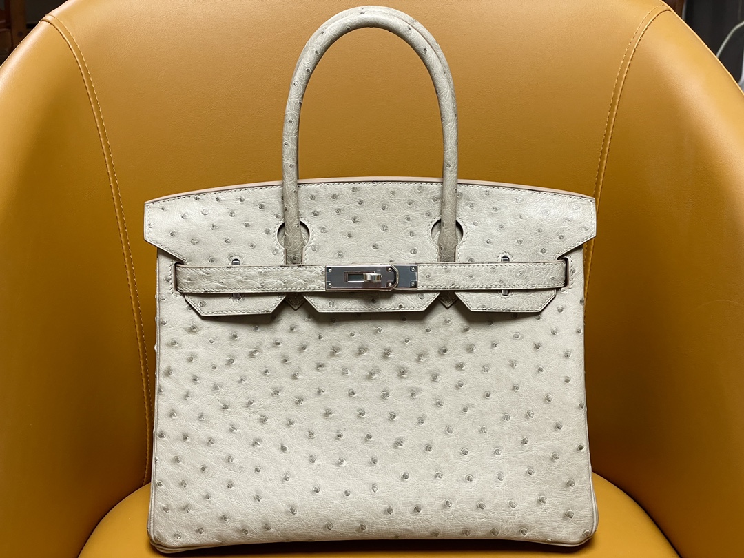 Bk30 Pearl Grey South African kk Ostrich Skin Silver Buckle