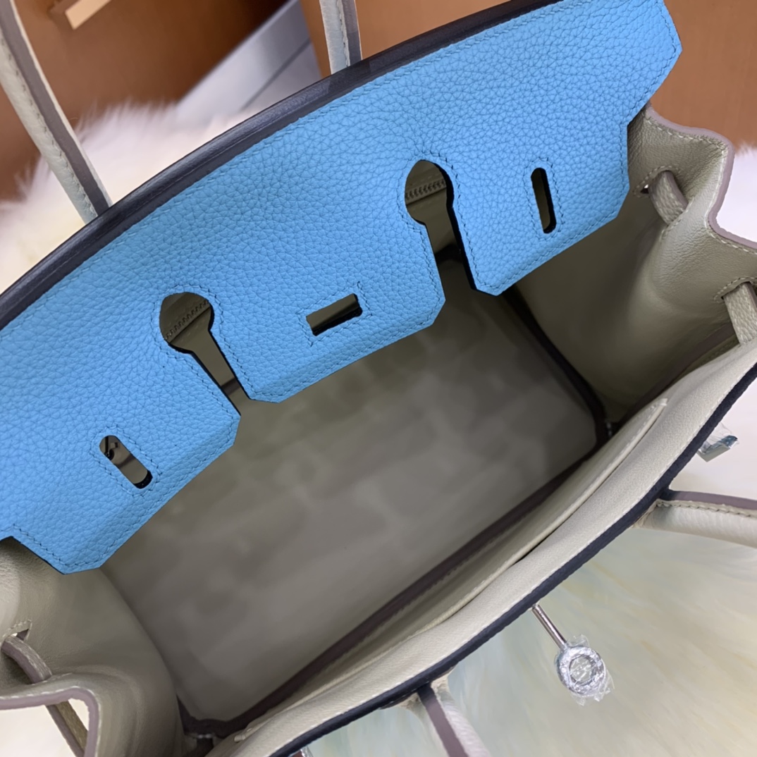 Birkin 25cm togo leather Northern blue ➕ milkshake white Silver buckle