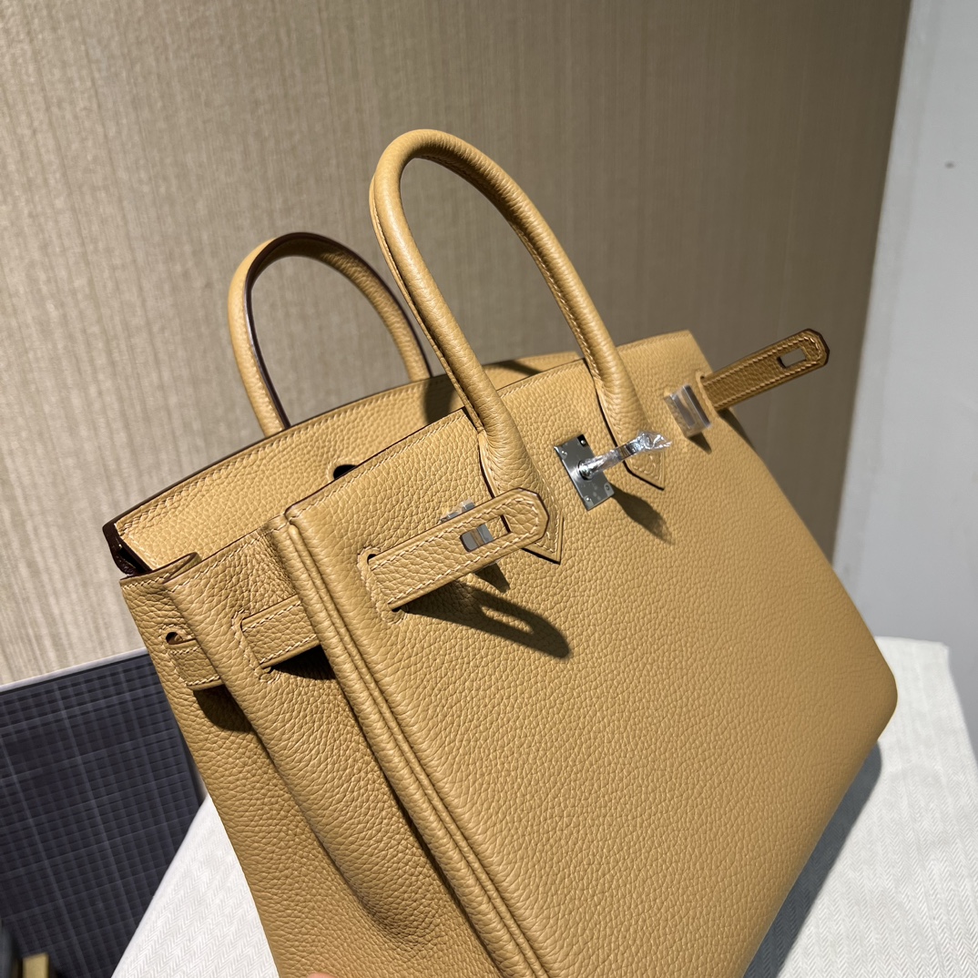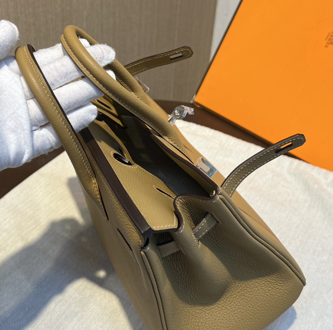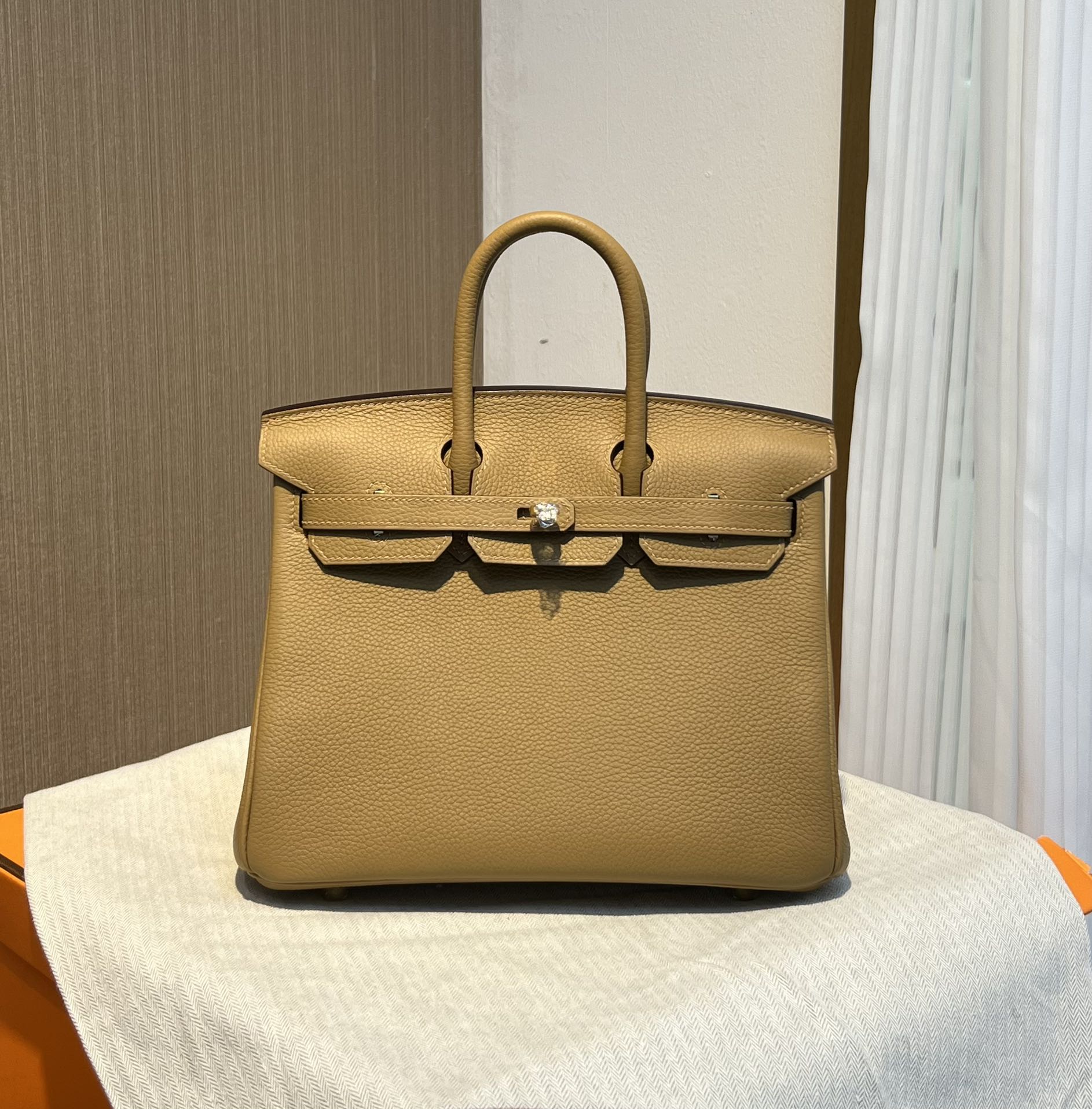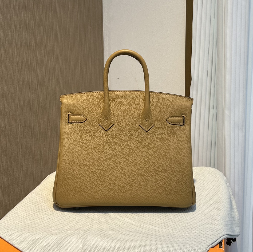 Birkin 25cm original imported Togo calfskin milk tea color gold and silver buckle all handmade beeswax thread stitching