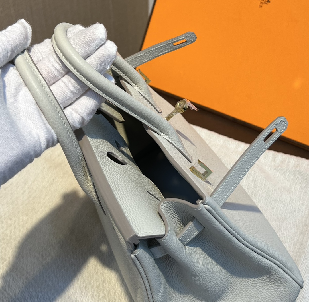 birkin25 imported togo leather glacier white all handmade gold buckle silver buckle
