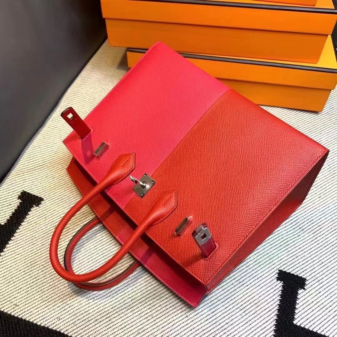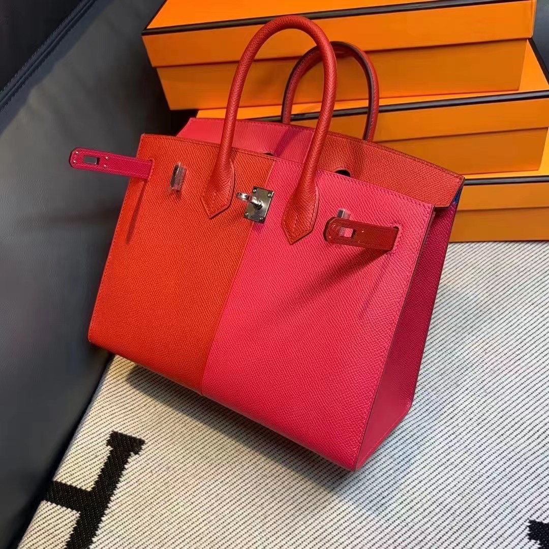 Birkin25 outside sewing new triple color Epsom leather extreme pink i6 + heart red S3 + Frida blue b3 hand sewn