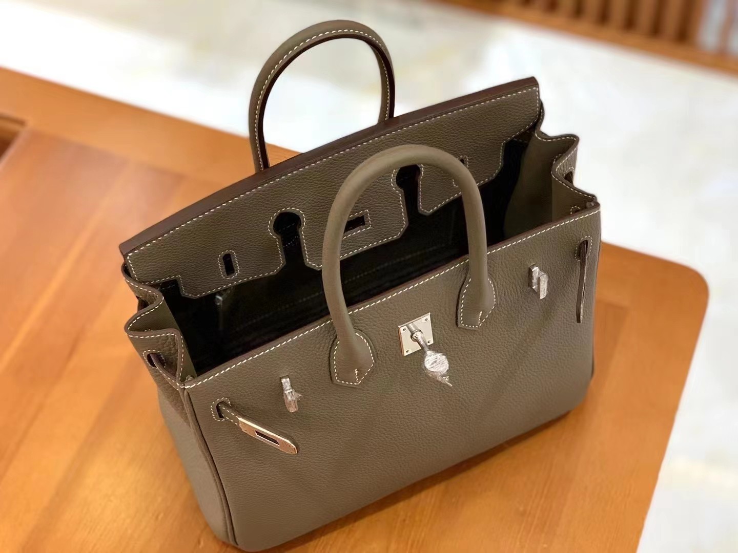 Birkin Elephant Grey Silver Buckle togo leather French original beeswax thread