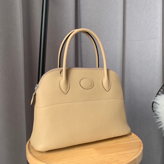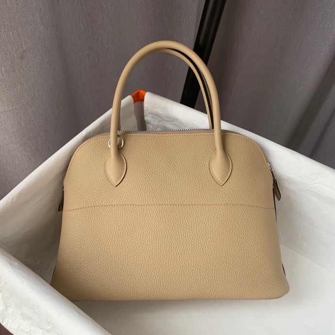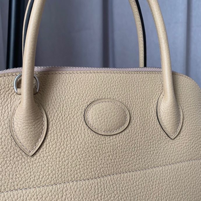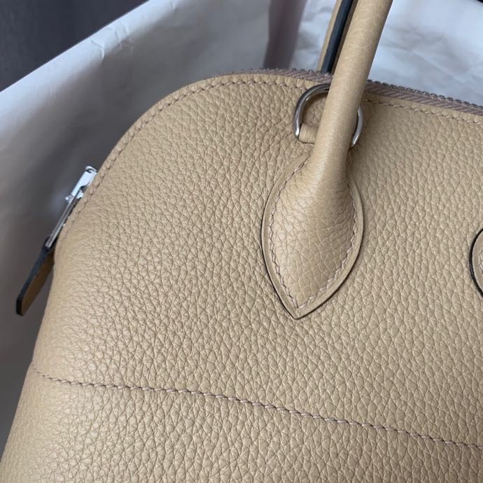 Bolide 27cm Imported original Epsom leather Semi hand waxed and stitched peach silver buckle