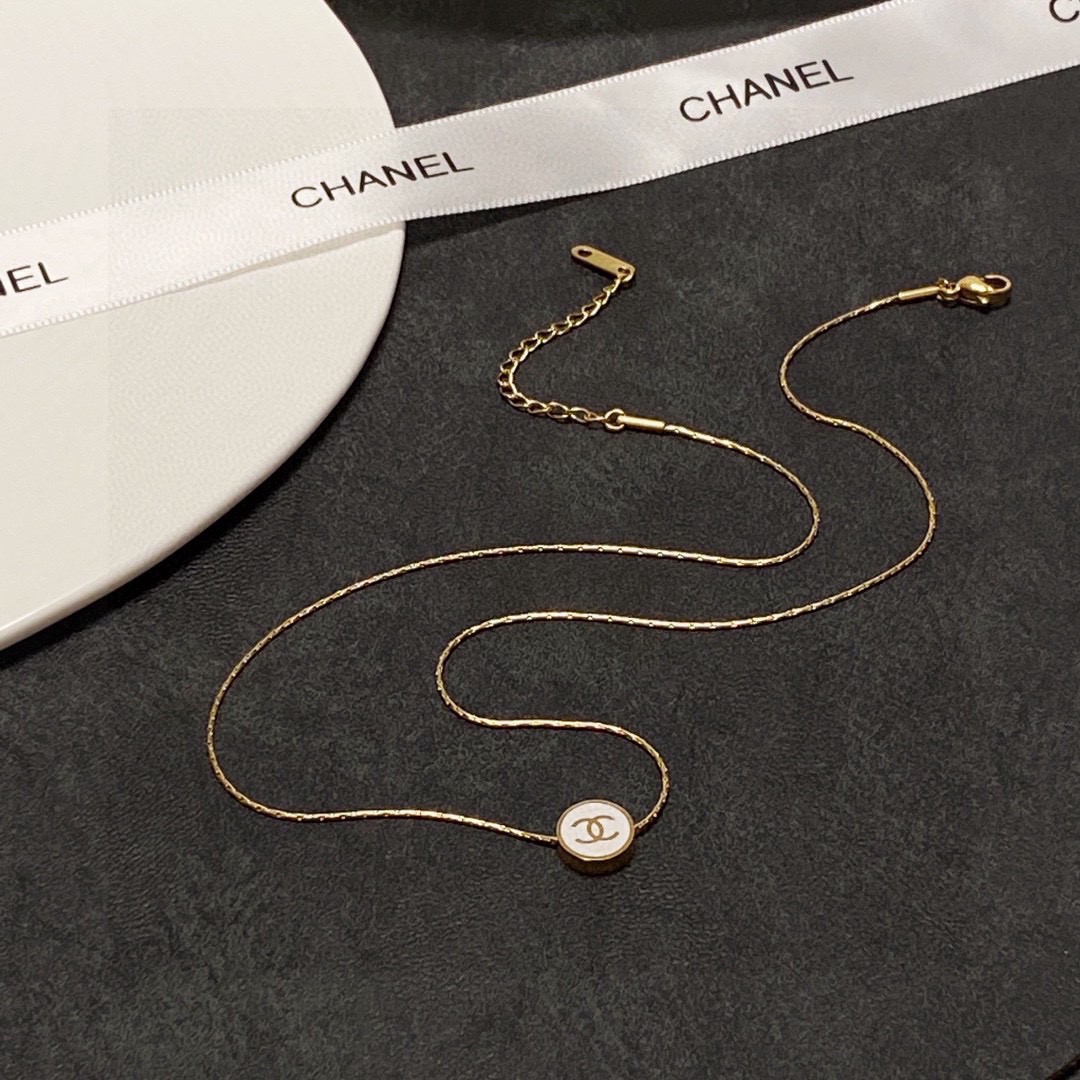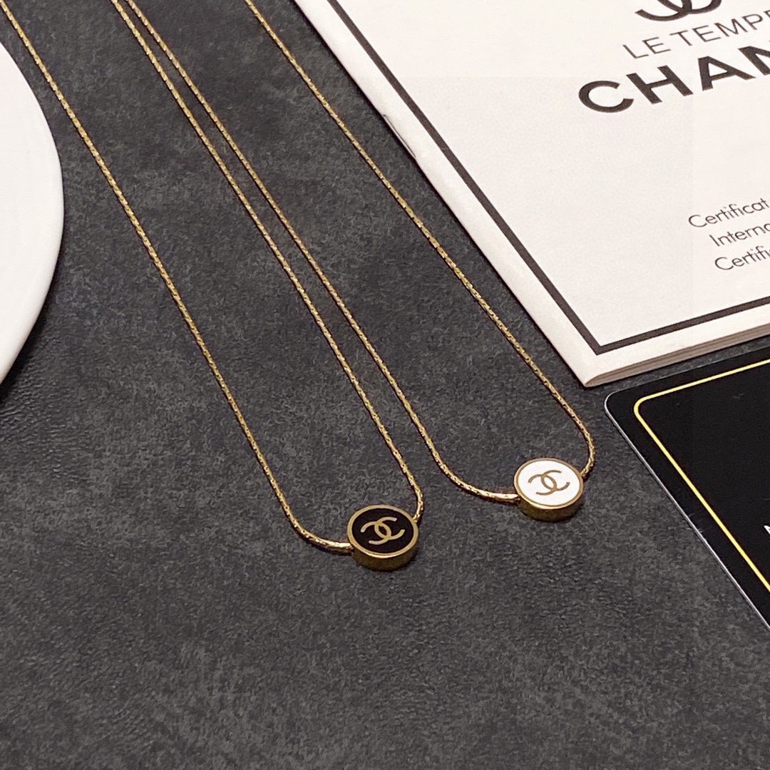 CHANEL🇫🇷Xiaoxiang Chanel's latest stainless steel color-preserving black and white two-sided thin necklace