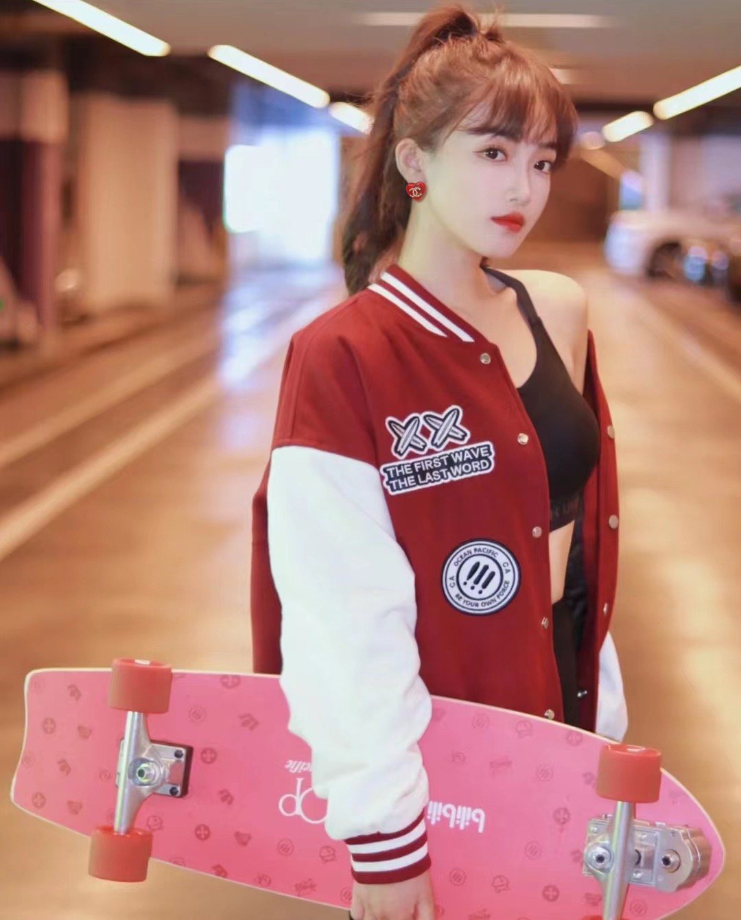 CHANEL🇫🇷Xiaoxiang pink crystal letter love pearl crystal diamond letter earrings