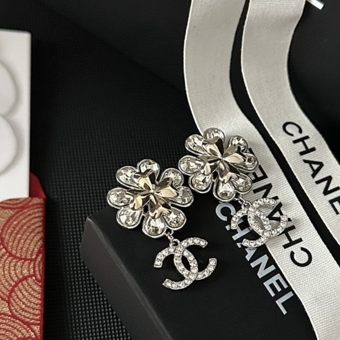 CHANEL🇫🇷Xiaoxiang two-color crystal diamond letter camellia stud earrings earrings jewelry
