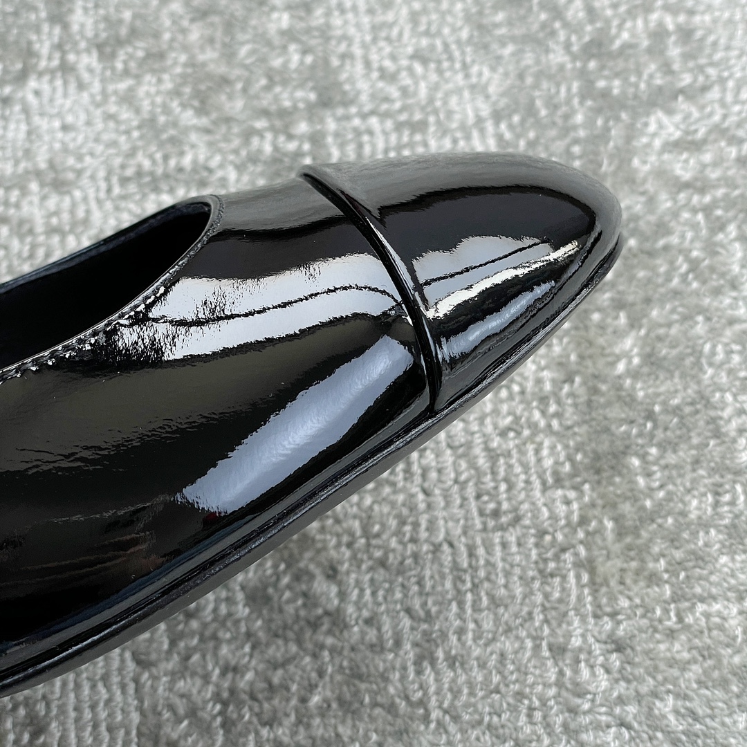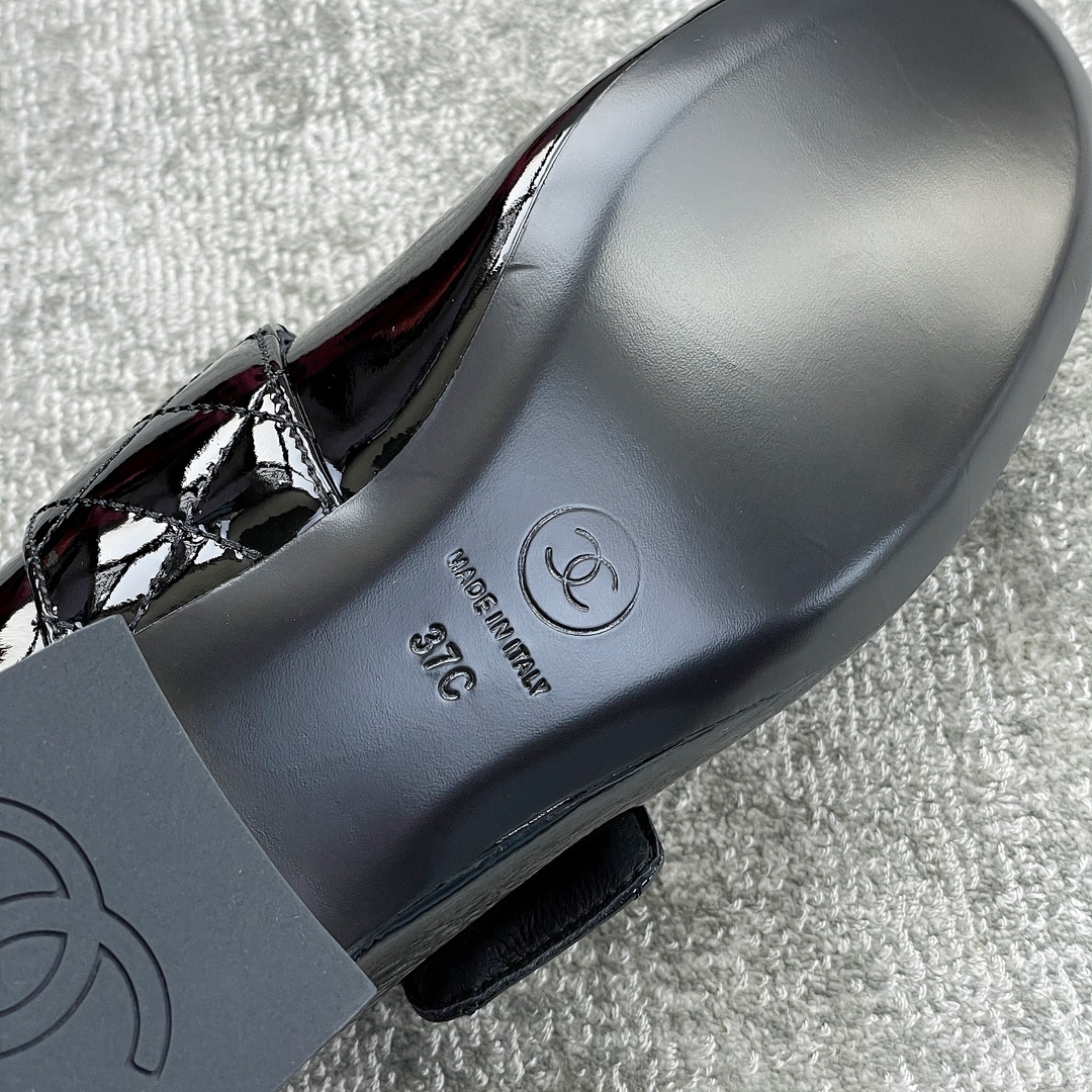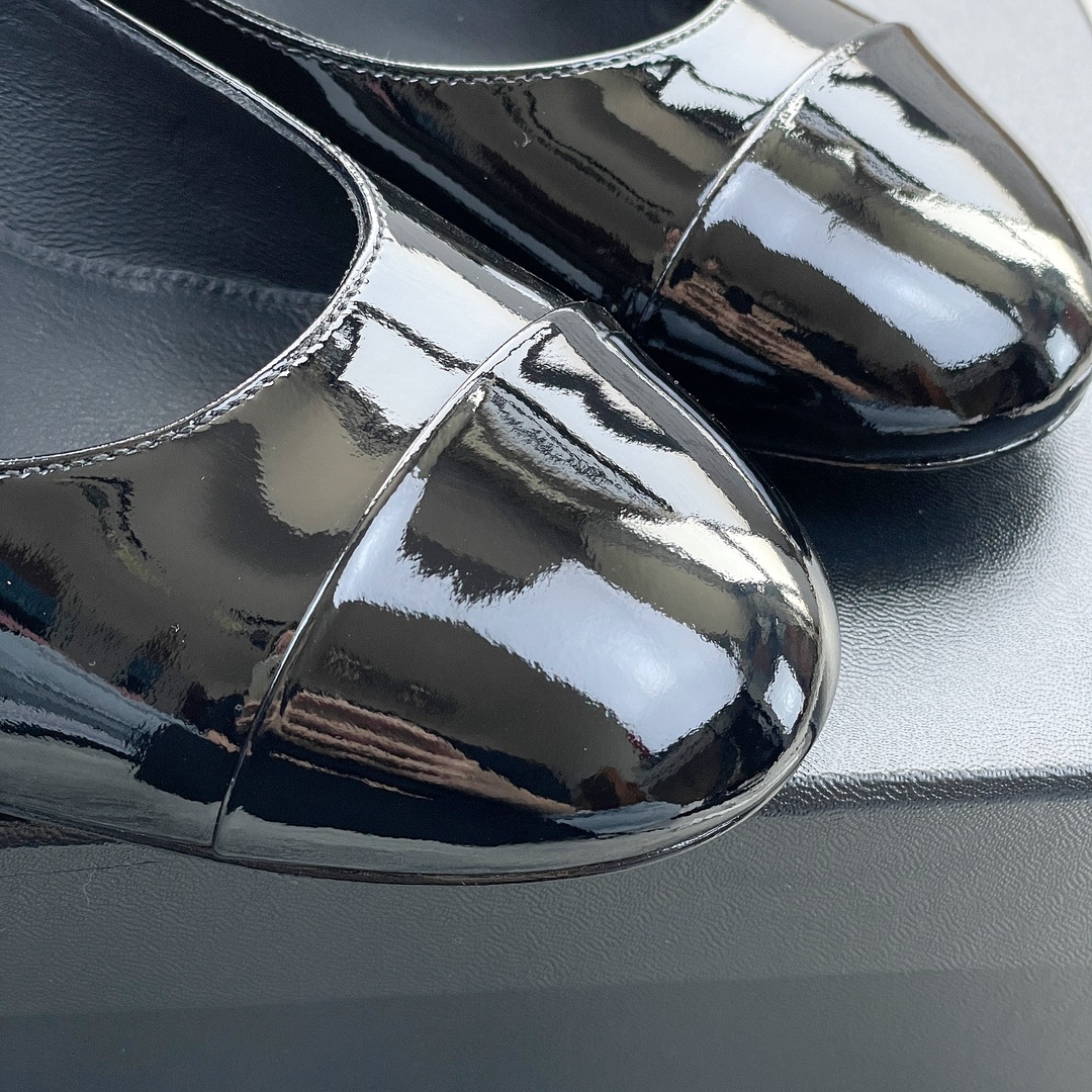 CHANEL book bag buckle single shoes Mary Jane single shoes bright wrinkled patent leather gold heel
