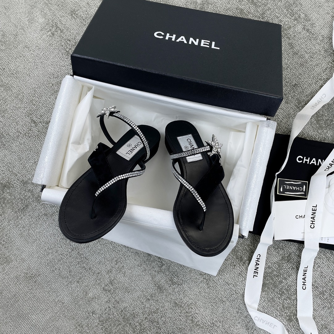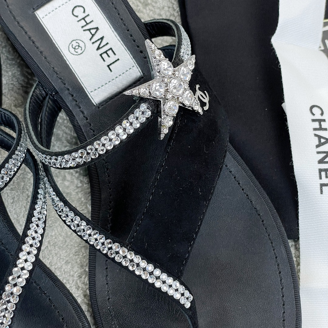 CHANEL pentagram slippers small fragrant exquisite a sandwich foot slippers strap hot diamond design