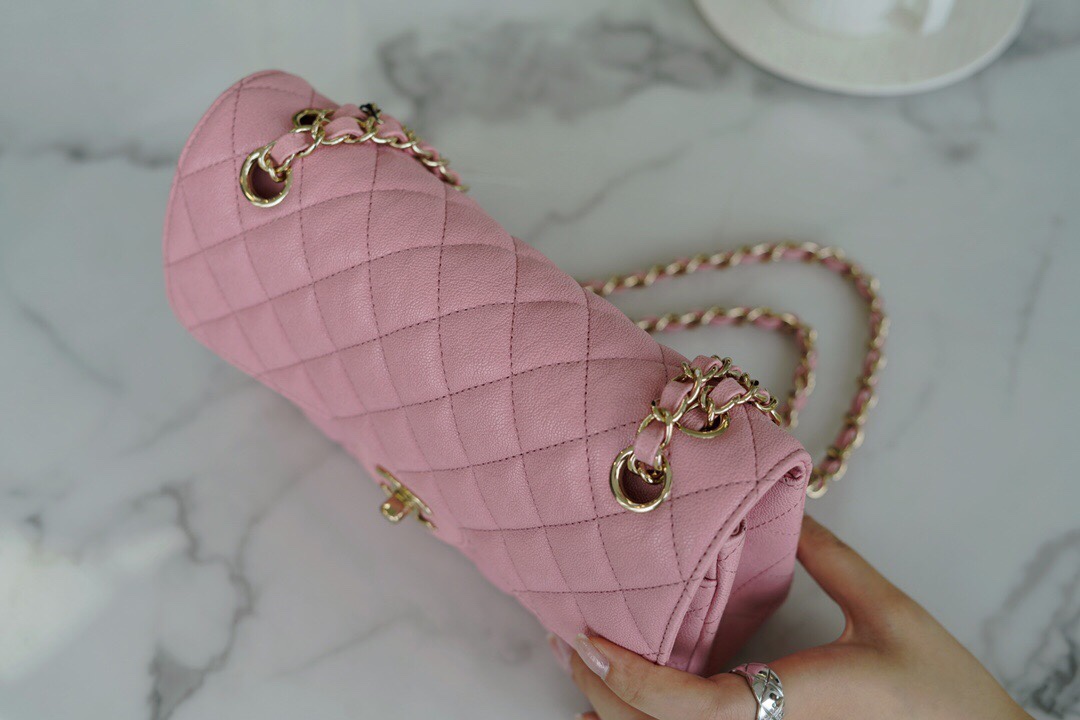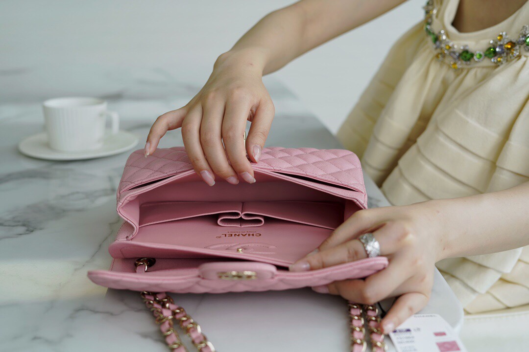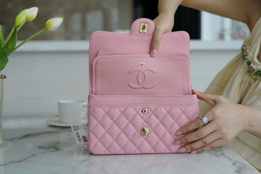𝐂𝐇𝐀𝐍𝐄𝐋 Classic Flap France 🇫🇷 𝐇𝐚𝐚𝐬 Original Caviar🐂 Washed Fetal Cow Small 🌸Pink