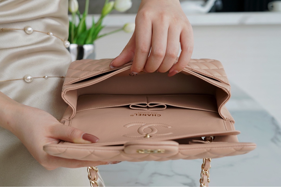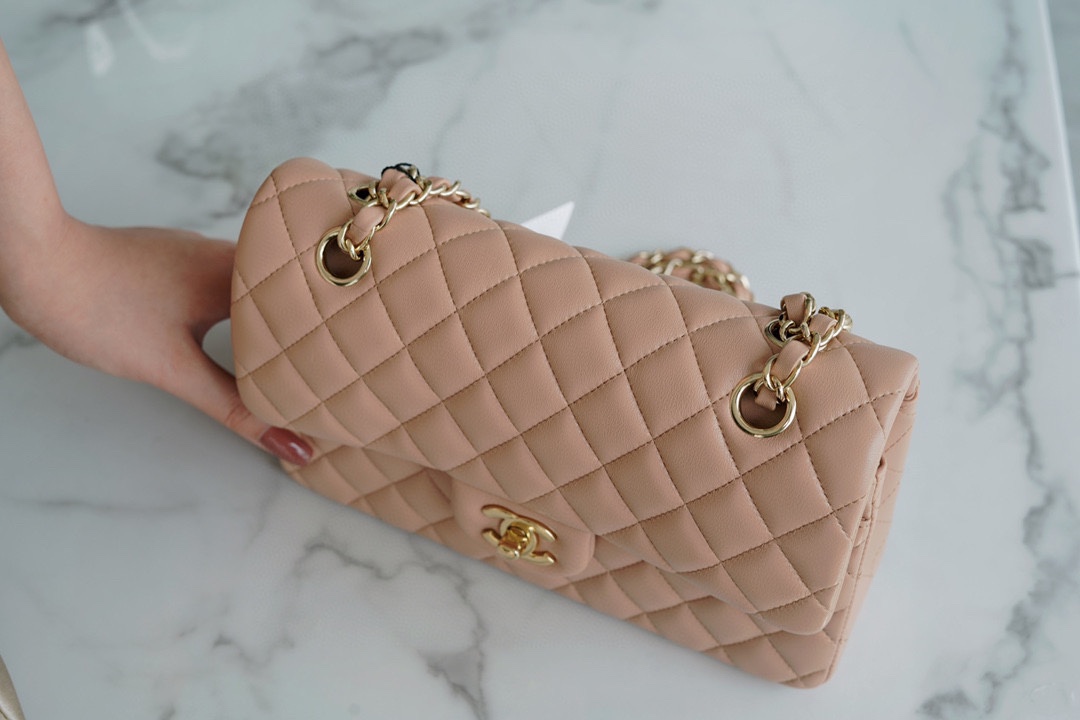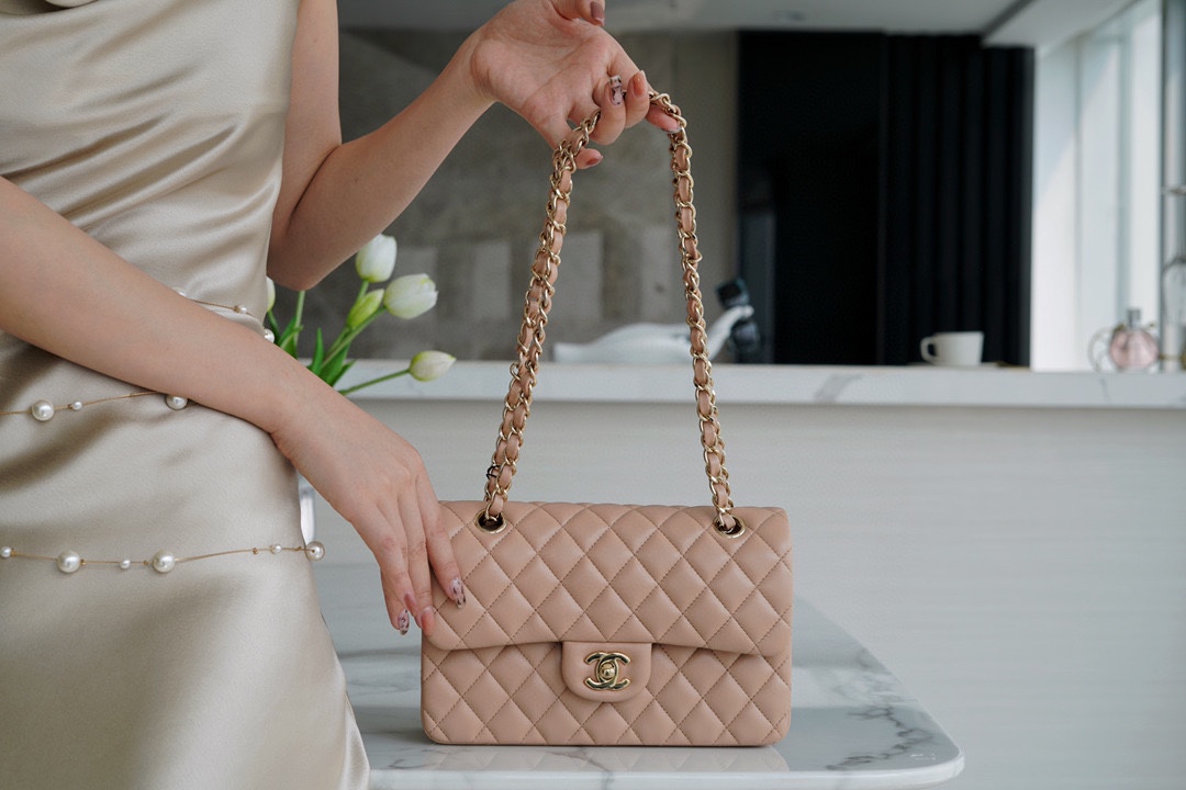 𝐂𝐇𝐀𝐍𝐄𝐋 Classic Flap Italy 🇮🇹 The 𝗚𝗥" Original Lambskin 🐑 Classic Mouth Flap Bag Small Milk Tea Apricot 🔆