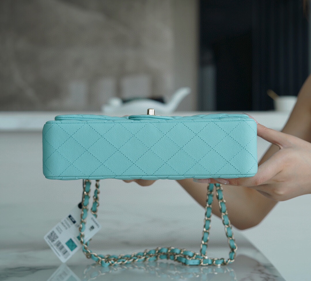 𝐂𝐇𝐀𝐍𝐄𝐋 Classic Flap France 🇫🇷 𝐇𝐇 𝐚𝐚𝐬 Original Caviar 🐂 Custom Calfskin Classic Flap Bag Medium Limited color 𝗧𝗶𝗳𝗳𝗳 𝗮𝗻𝘆 Blue🦋