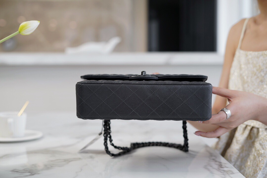 𝐂𝐇𝐀𝐍𝐄𝐋 Classic Flap France 𝐇𝐚𝐚𝐬Original Lychee Pattern🐂 Classic Flap Bag Fang Fatty🔆Black Silver🖤