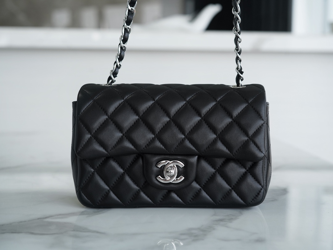 𝐂𝐇𝐀𝐍𝐄𝐋 Classic Flap Italy 🇮🇹 The 𝗚𝗥" Original Lambskin 🐑 Classic Flap Bag Black Lamb Silver Large 𝒎𝒊𝒏𝒊🔆