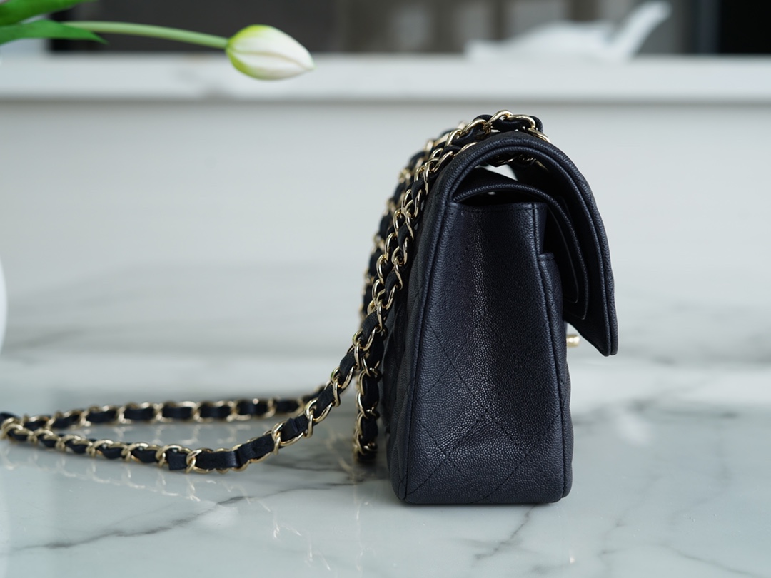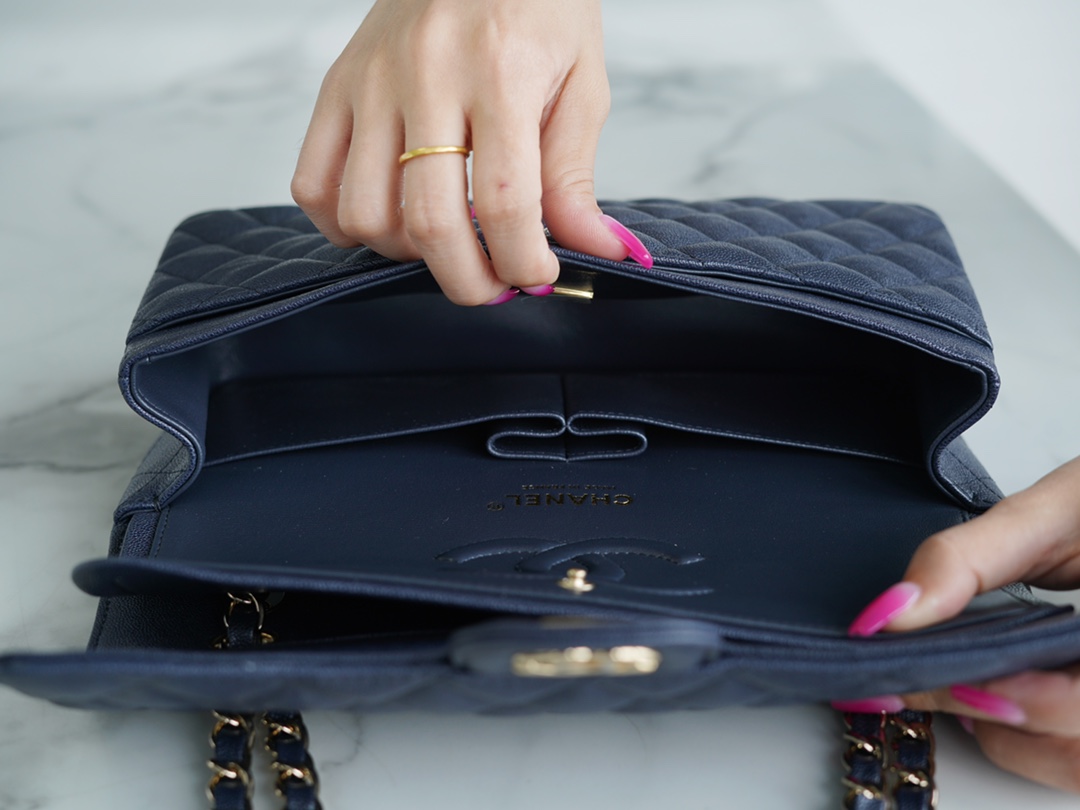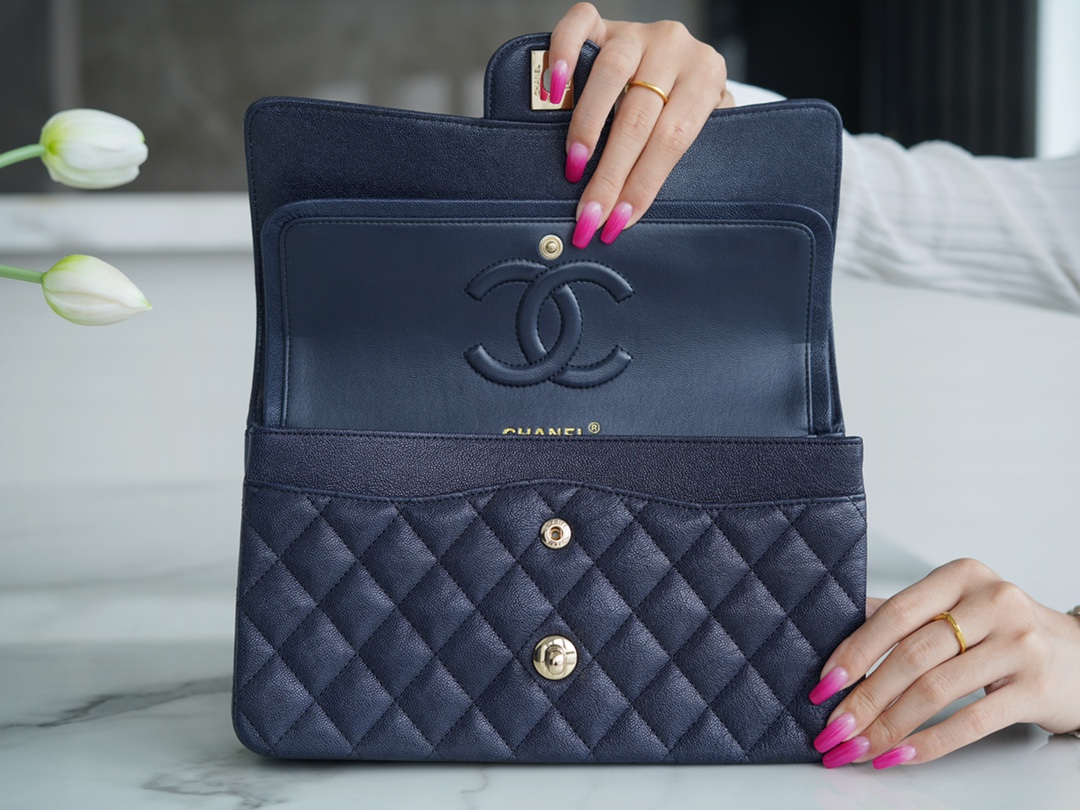 𝐂𝐇𝐀𝐍𝐄𝐋 Classic Flap washed cowhide is made from the most delicate newborn calves washed fetal cow small dark blue