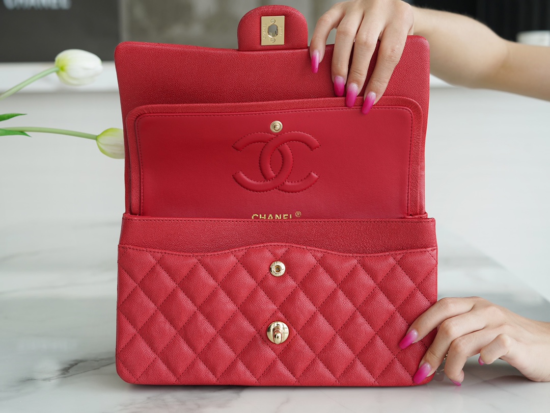 𝐂𝐇𝐀𝐍𝐄𝐋 Classic Flap washed cowhide is made from the most delicate calves just born Washed fetal cow Medium Large red ❤