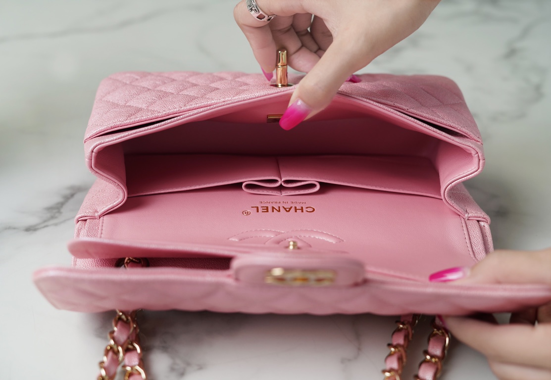 𝐂𝐇𝐀𝐍𝐄𝐋 Classic Flap washed cowhide is made from the most delicate newborn calf Washed fetal cow Jr. pearlescent powder 🌸