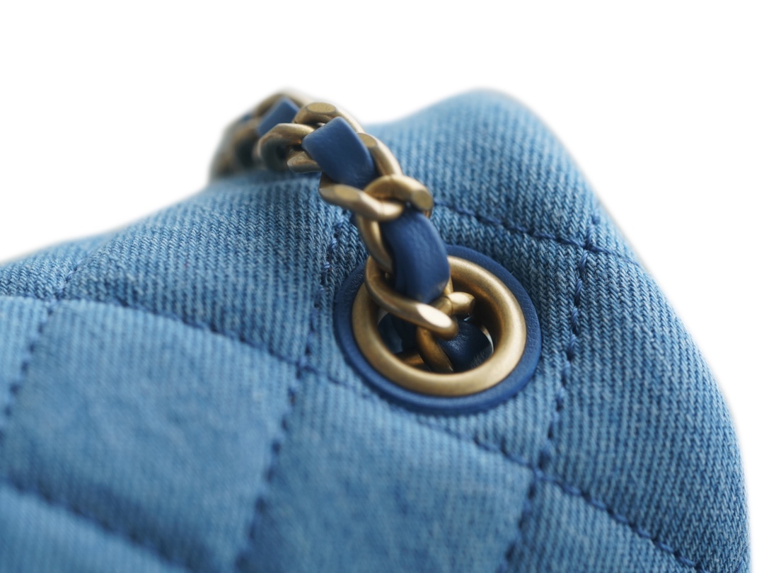 𝗖𝗛𝗔𝗡𝗘𝗟 ❶❾ 𝗕𝗔𝗚 Original Denim Series ❥ Genuine Leather ❥ Small ❥𝟮𝟮𝗣 Denim Light Blue 🌀