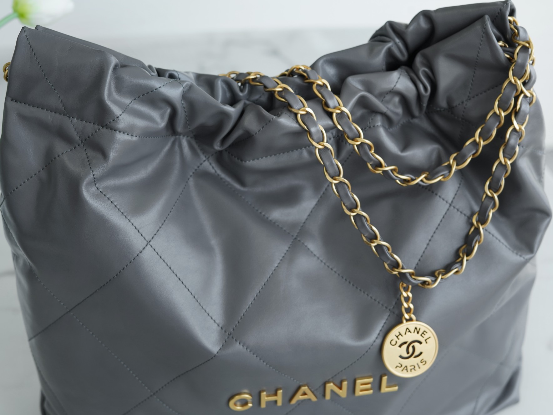 𝗖𝗛𝗔𝗘𝗡𝗟✦𝟐𝟐𝗣Spring/Summer New 𝟐𝟐Handbag Genuine Tail Leather Medium Premium Gray