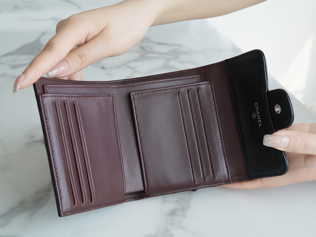 𝗖𝗛𝗔𝗘𝗡𝗟✦In exclusive channel special lambskin 🐑Classic zippered coin card case Black 🖤