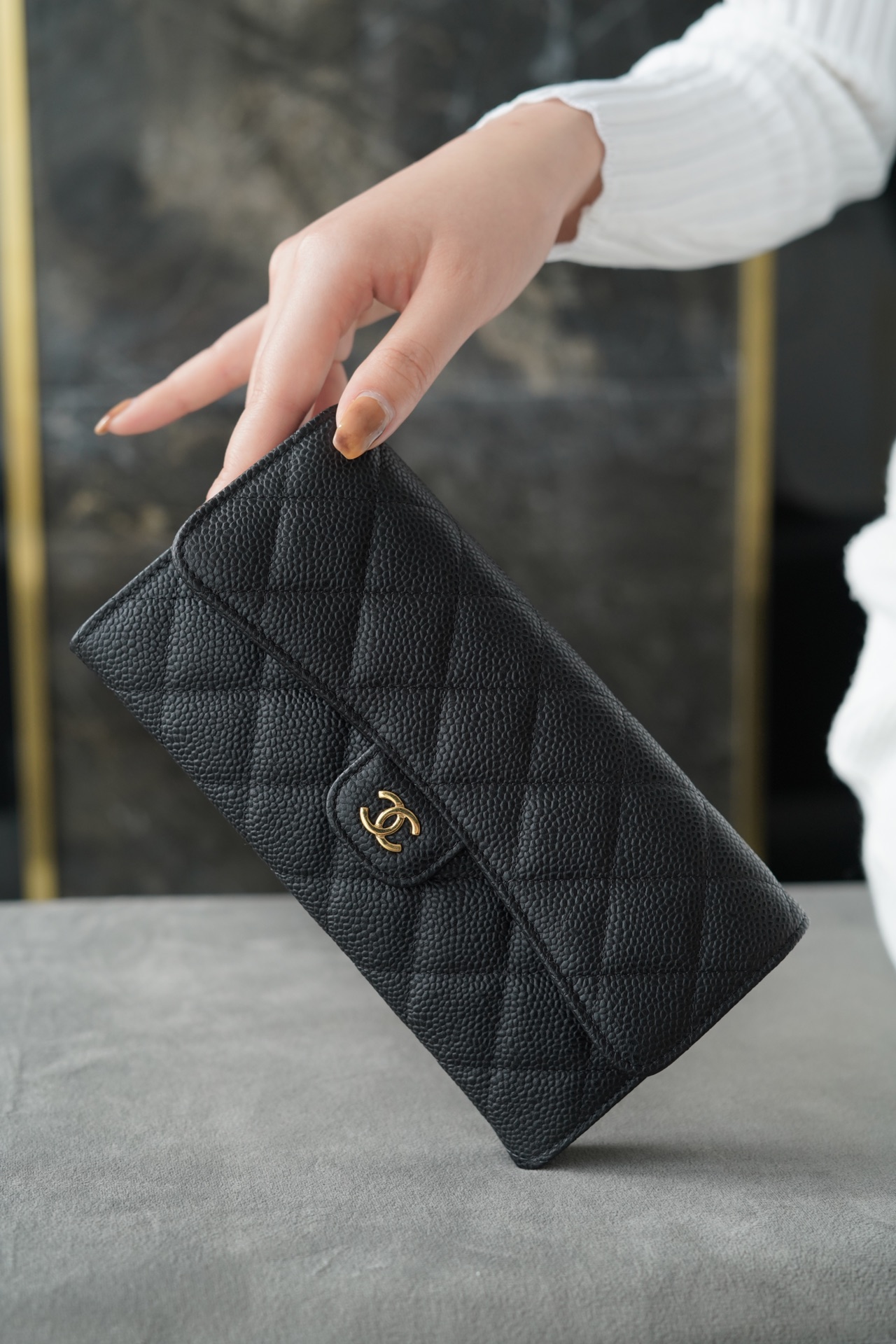 𝗖𝗛𝗔𝗘𝗡𝗟✦In goatskin leather🐐 19 Series Short Clip Black Gold