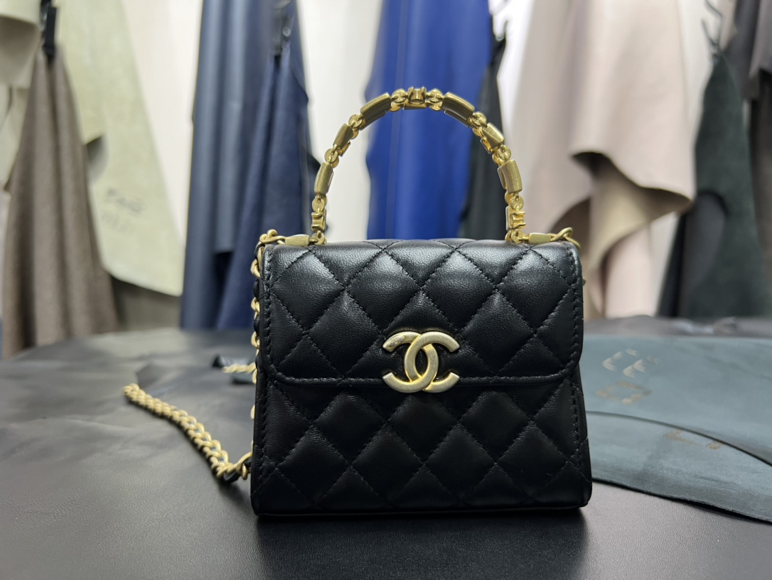 𝗖𝗛𝗔𝗡𝗘𝗟✦ Italy 🇮🇹 [Box] Original Open Department Lambskin 22B Enamel Buckle Kelly Small Black Gold