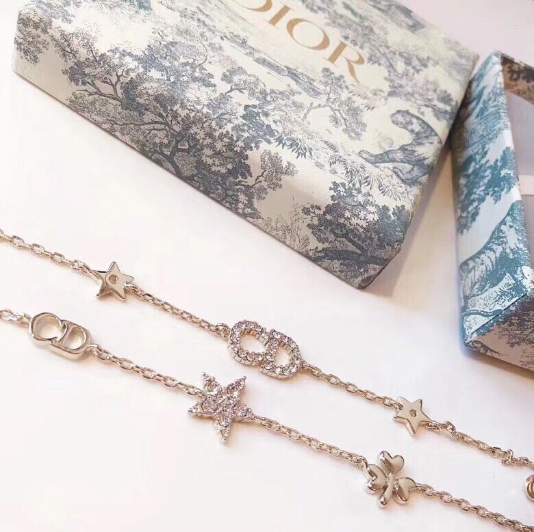Dior Double Bead Round White Gold CD Pendant Stud Earrings