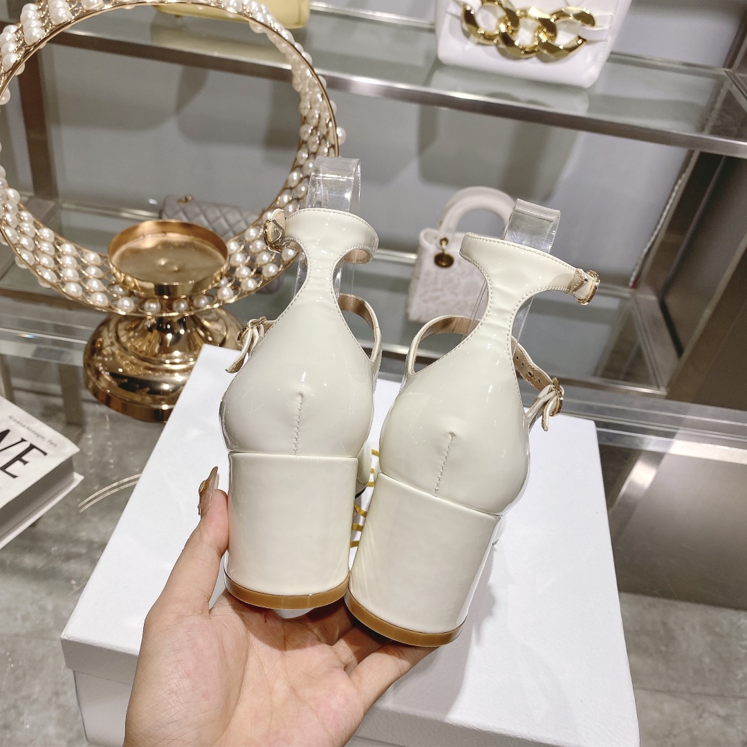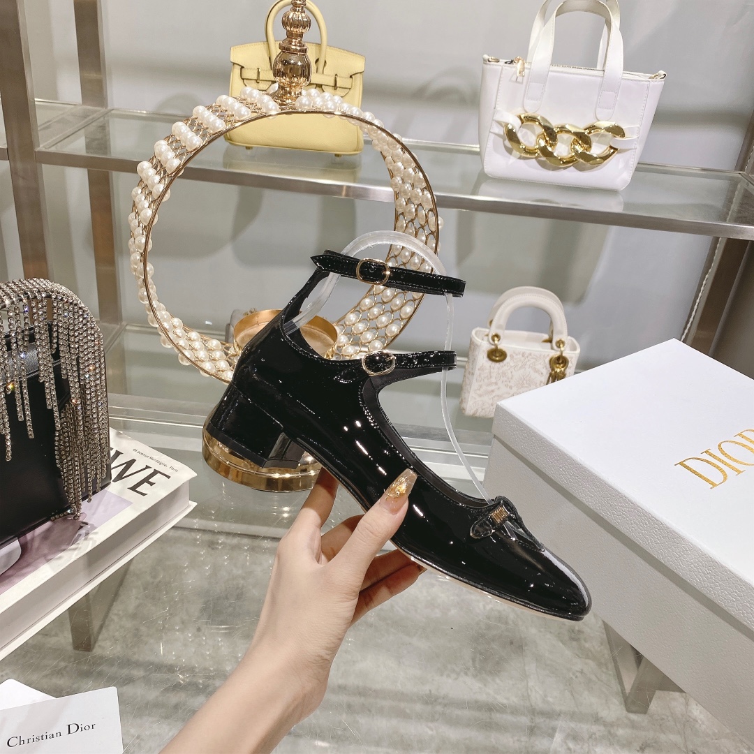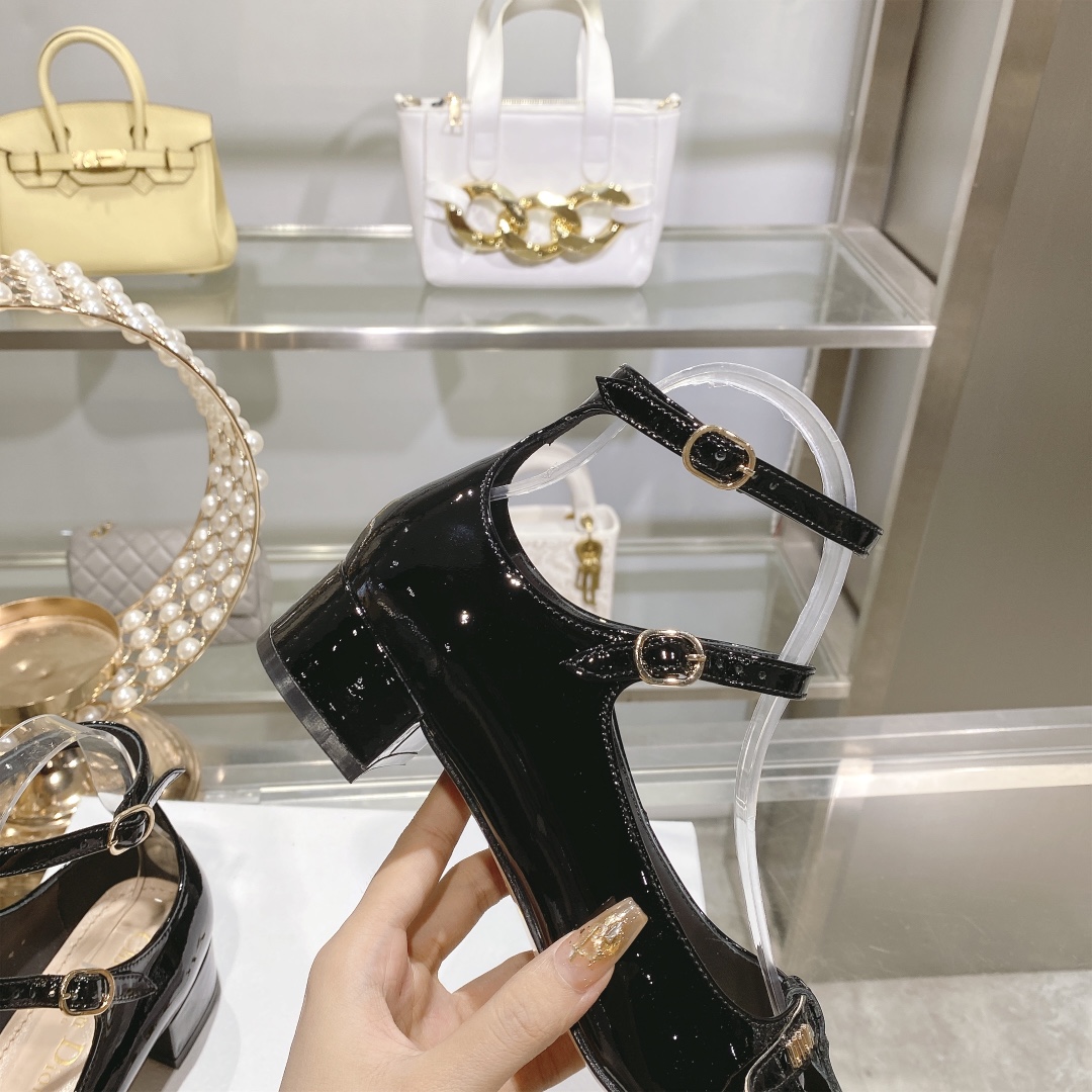 DIOR Retro Fashion Cutout Double Buckle Chunky Heel Mary Janes 6.5cm Beige