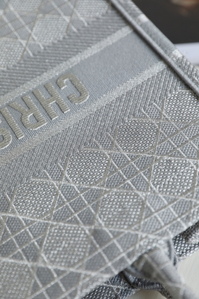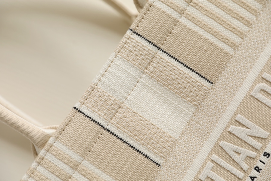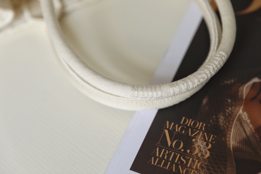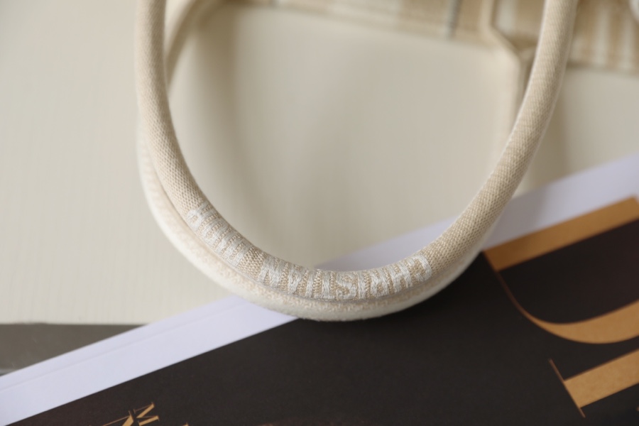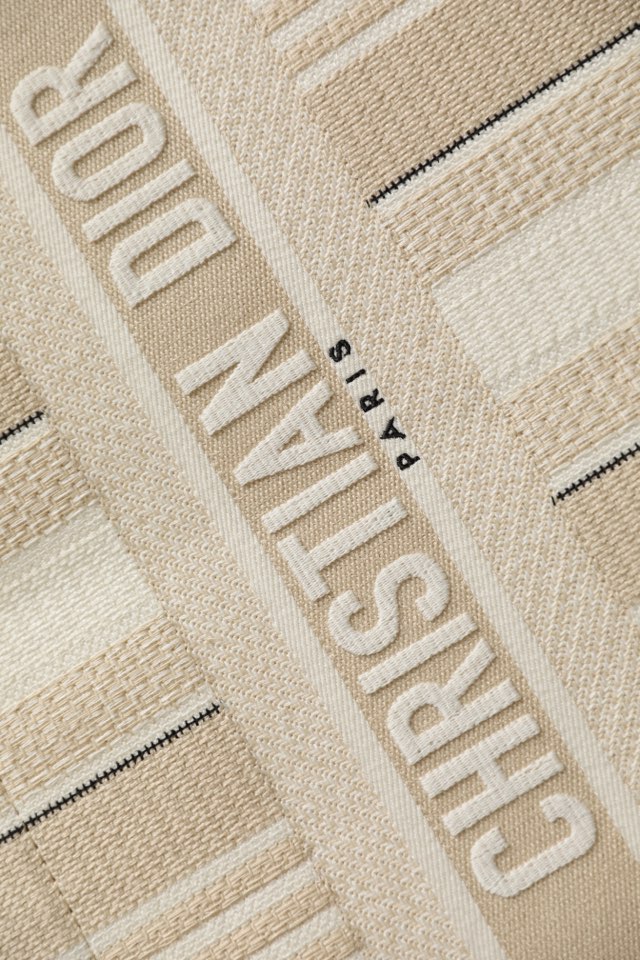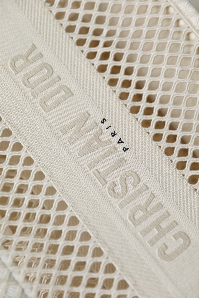 DIOR TOTE beige and white mesh fabric embroidery