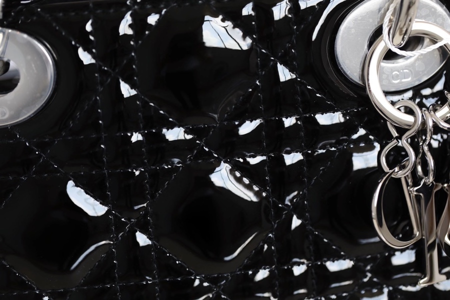 Black and Silver Lady Dior vine check patent leather cow leather mini handbag