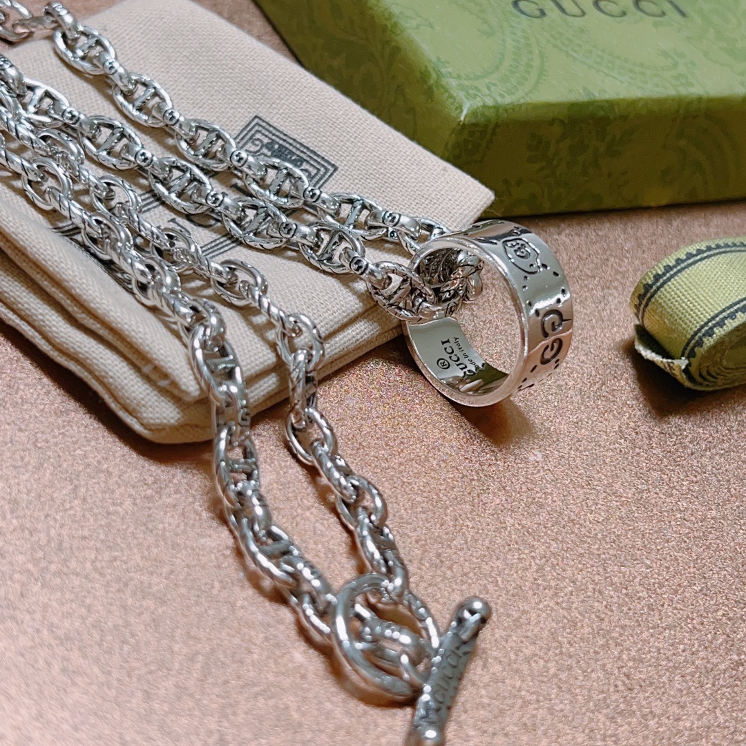 𝐆𝐮𝐜𝐜𝐢 Double G diamond-studded all-match necklace