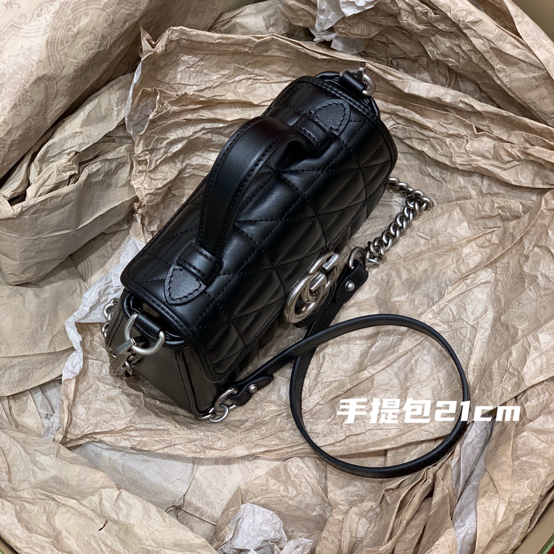 GUCCI marmont marmont geometric series (handbag black 21cm)# 583571