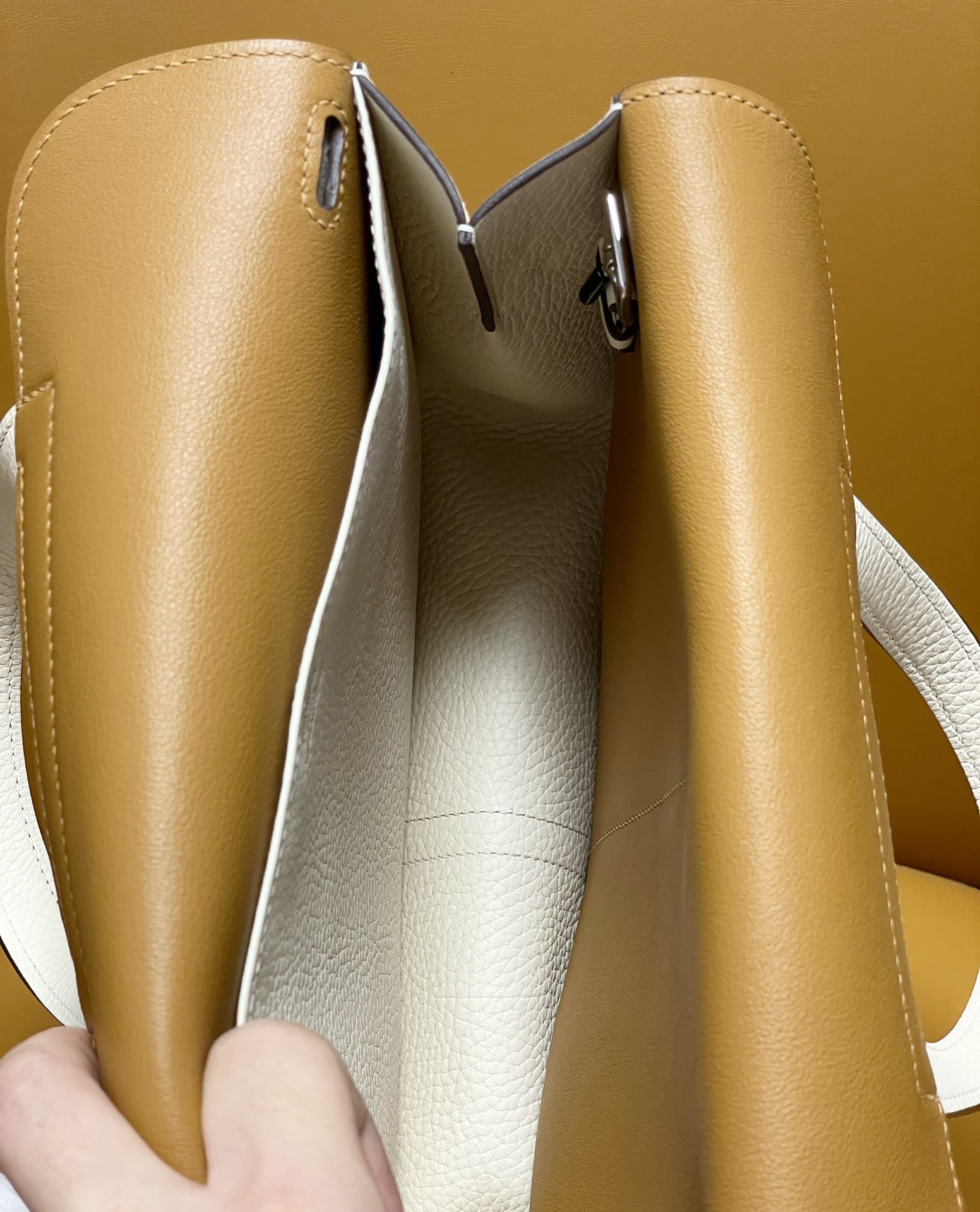 Halzan25 cream white inside spelling sesame color silver buckle TC leather