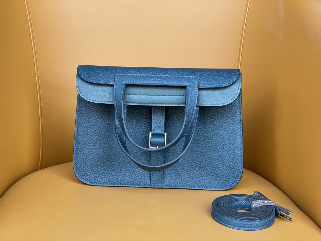 Halzan31 horseshoe bag original TC leather jungle green silver buckle