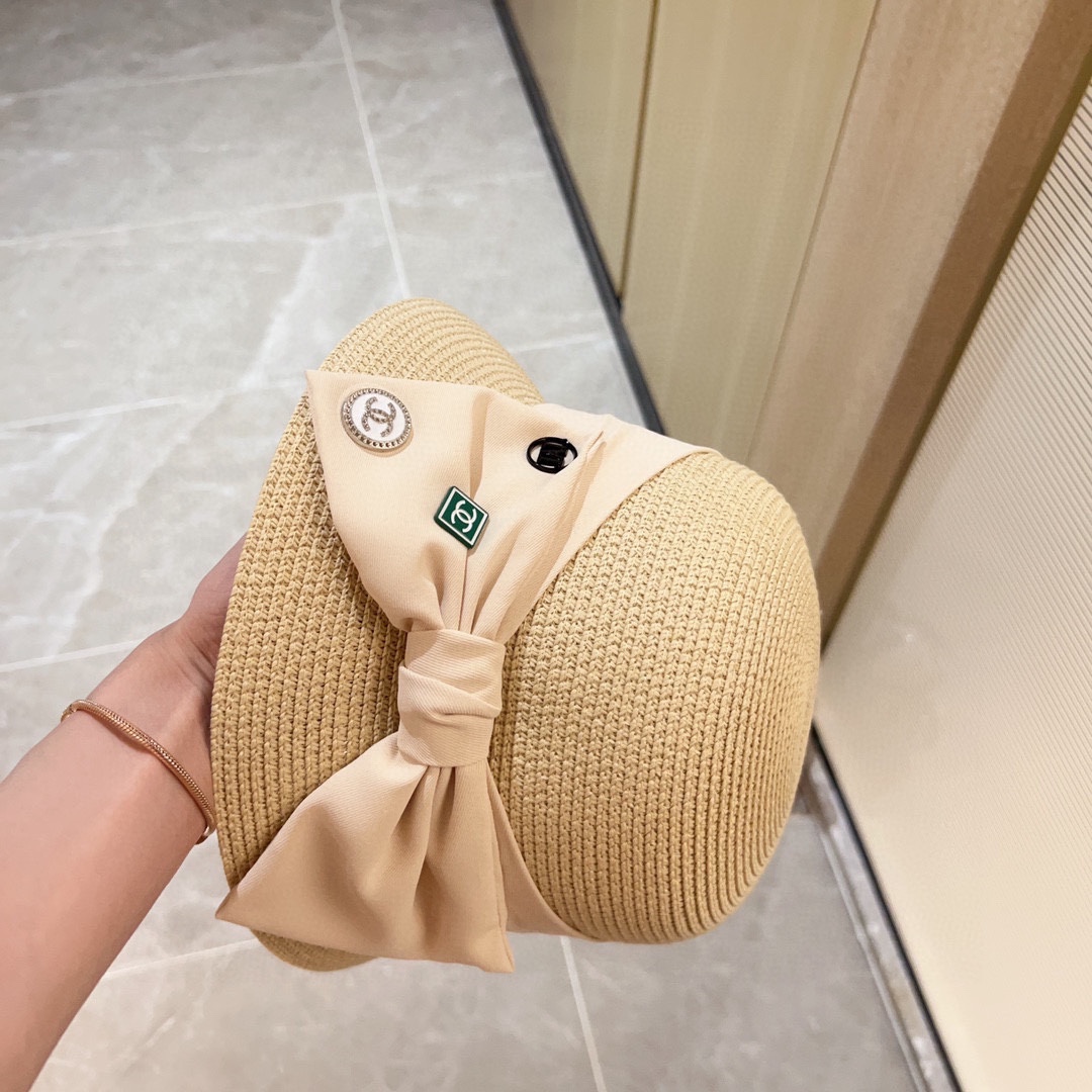 CHANEL Love Ribbon All-match Pot Hat Straw Hat