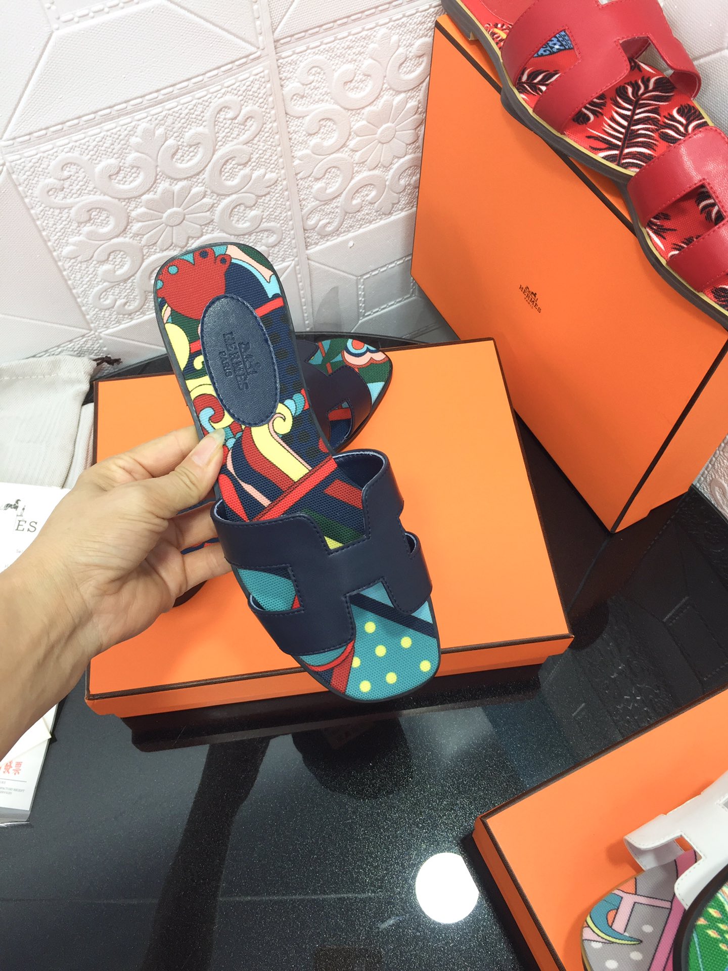 Hermes Oasis diamond face slippers series