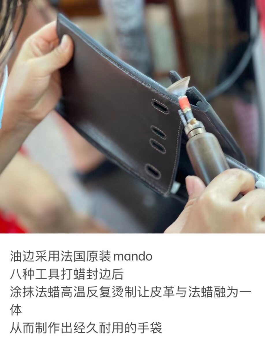 Hermes bag making process:Oiled edges using original French mandalas